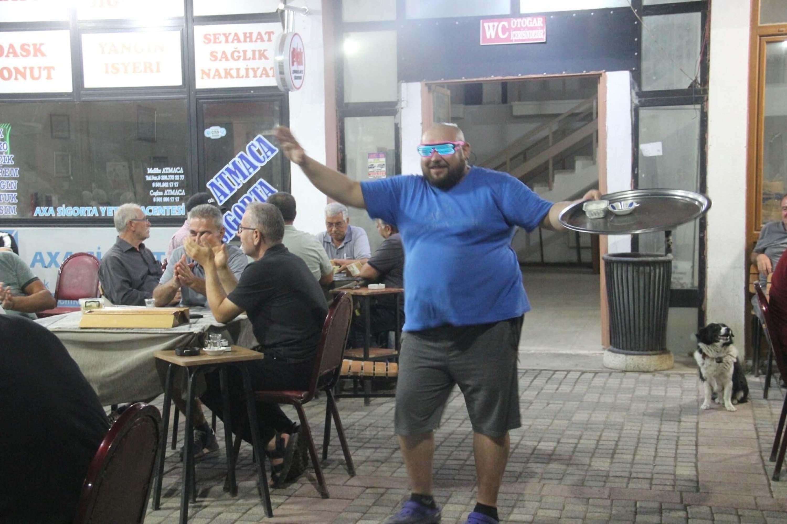 Fatih DALDAL/BAYRAMİÇ (Çanakkale), (DHA)-ÇANAKKALE'nin Bayramiç ilçesindeki bir kahvehanede çalışan Yetkin Sarıkaya (32), çay dağıtırken yaptığı danslarla fenomen oldu.