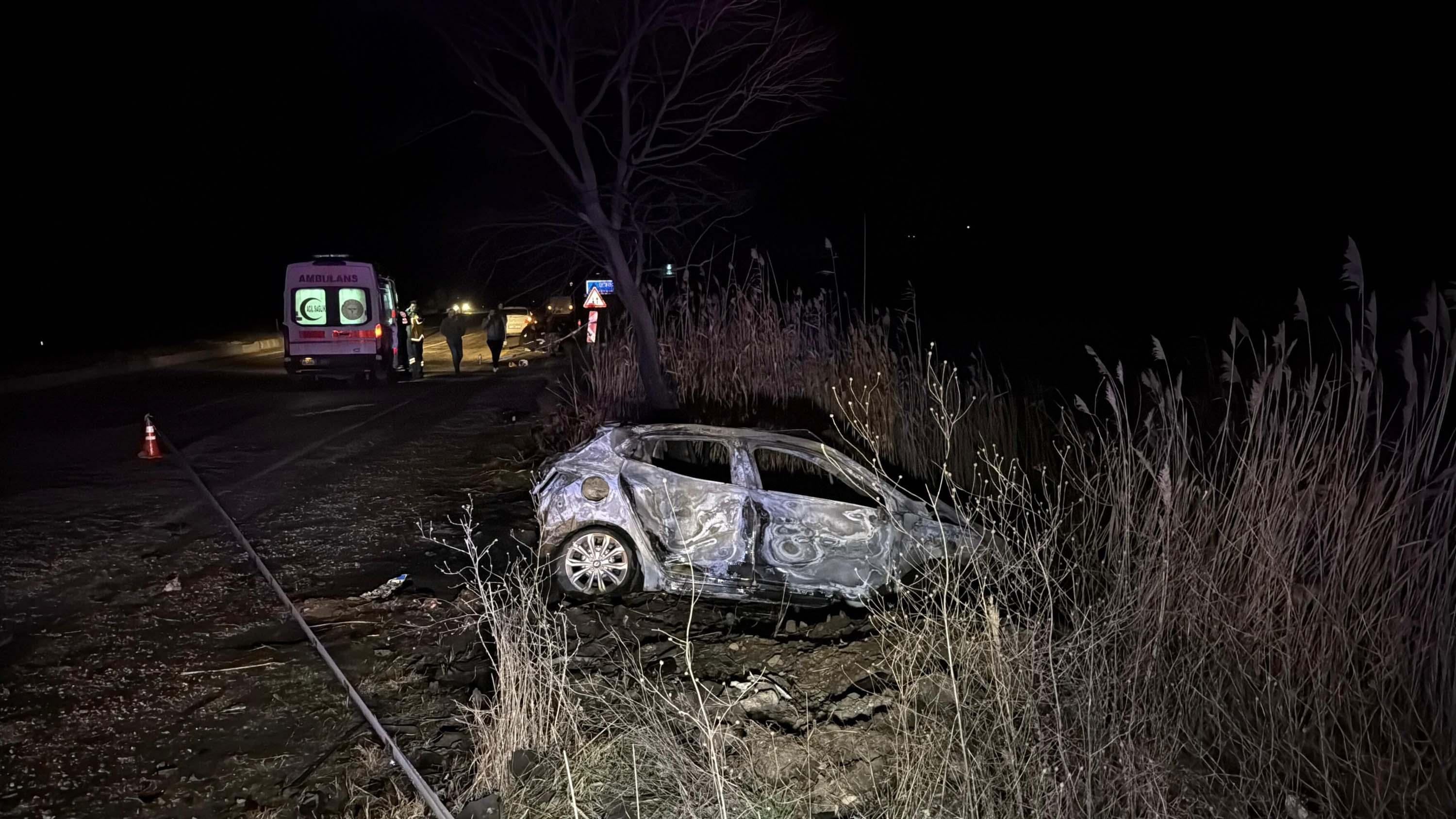 Kaza, dün saat 20.00 sıralarında Çan ilçesi Etili Kavşağı'nda meydana geldi. Etili köyünden gelen Rabia Aysel yönetimindeki 34 KMU 689 plakalı otomobil ile Nuri Ziya Mavi'nin kullandığı 17 ZC 606 plakalı otomobil çarpıştı. Çarpışmanın şiddetiyle araçlar savurulurken, Rabia Aysel'in otomobili alev aldı. Olay yerine çok sayıda ambulans sevk edilirken, yanan otomobil kaza yerine gelen itfaiye ekipleri tarafından söndürüldü.
