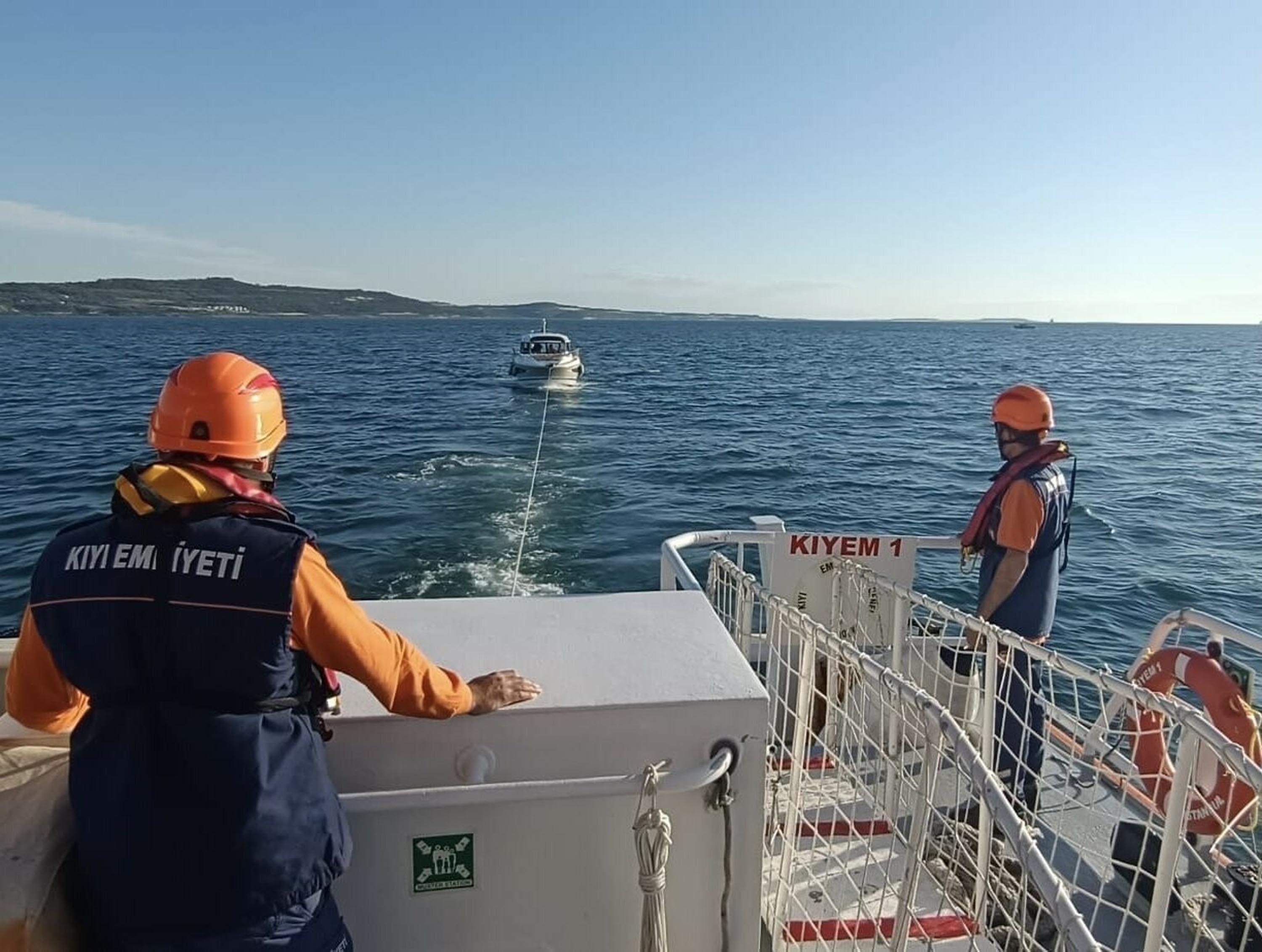 Nazif Cemhan ŞEN/ ÇANAKKALE, (DHA)- ÇANAKKALE Boğazı'nda makine arızası nedeniyle sürüklenen, içerisinde 3 kişinin bulunduğu tekne, Kıyı Emniyeti Genel Müdürlüğü'ne ait 'KIYEM-1' hızlı tahlisiye botu ile yedeklenip, Çanakkale Marina'ya yanaştırıldı.