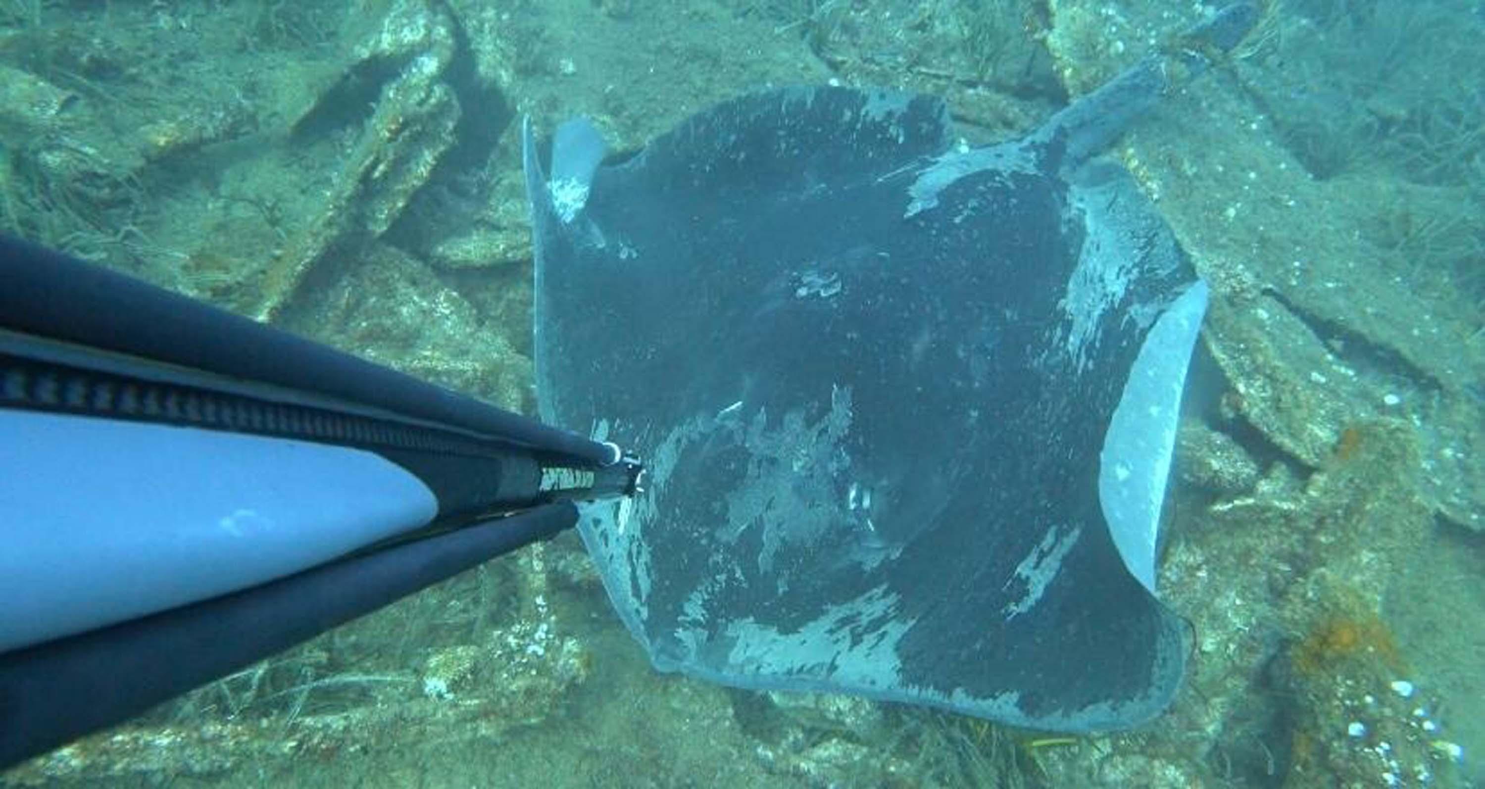 Ege Denizi'nin kuzeyinde trofe avı içi dalış yapan rekortmen dalgıç Müjdat Turan, bir süre sonra kendisine bir vatozun yaklaştığını fark etti. Turan, kuyruk kısmı kesilmiş ve halatla bağlanmış olan vatozu su altı kamerasıyla görüntüledi. Vatozun çok tehlikeli bir tür olduğunu belirten Turan, bulunduğu yerde derinliğin çok fazla olması nedeniyle balığı halattan kurtaramadığını söyledi.
