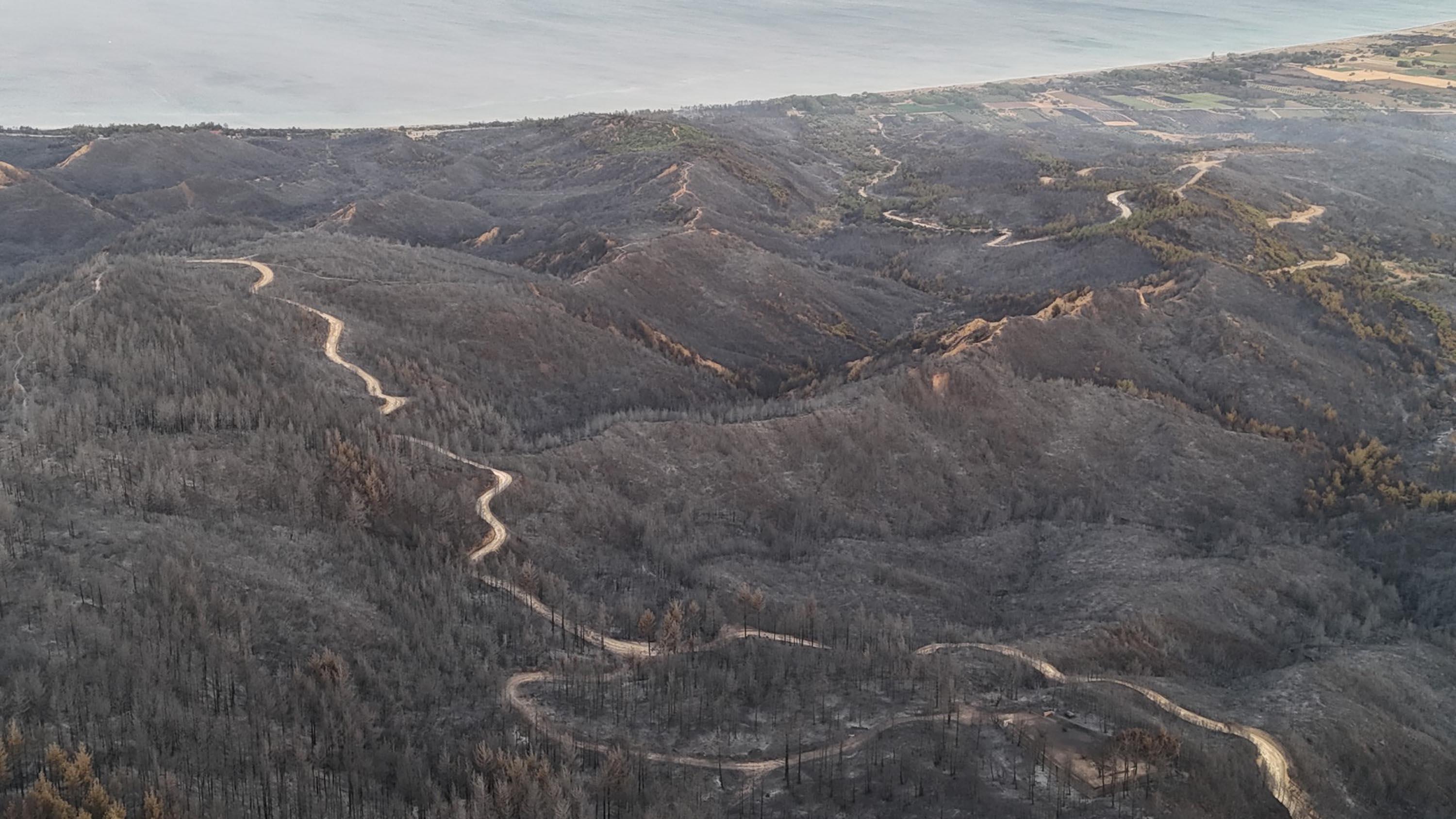 Çanakkale'deki orman yangını 2'nci gününde; yanan alanlar dron ile görüntülendi