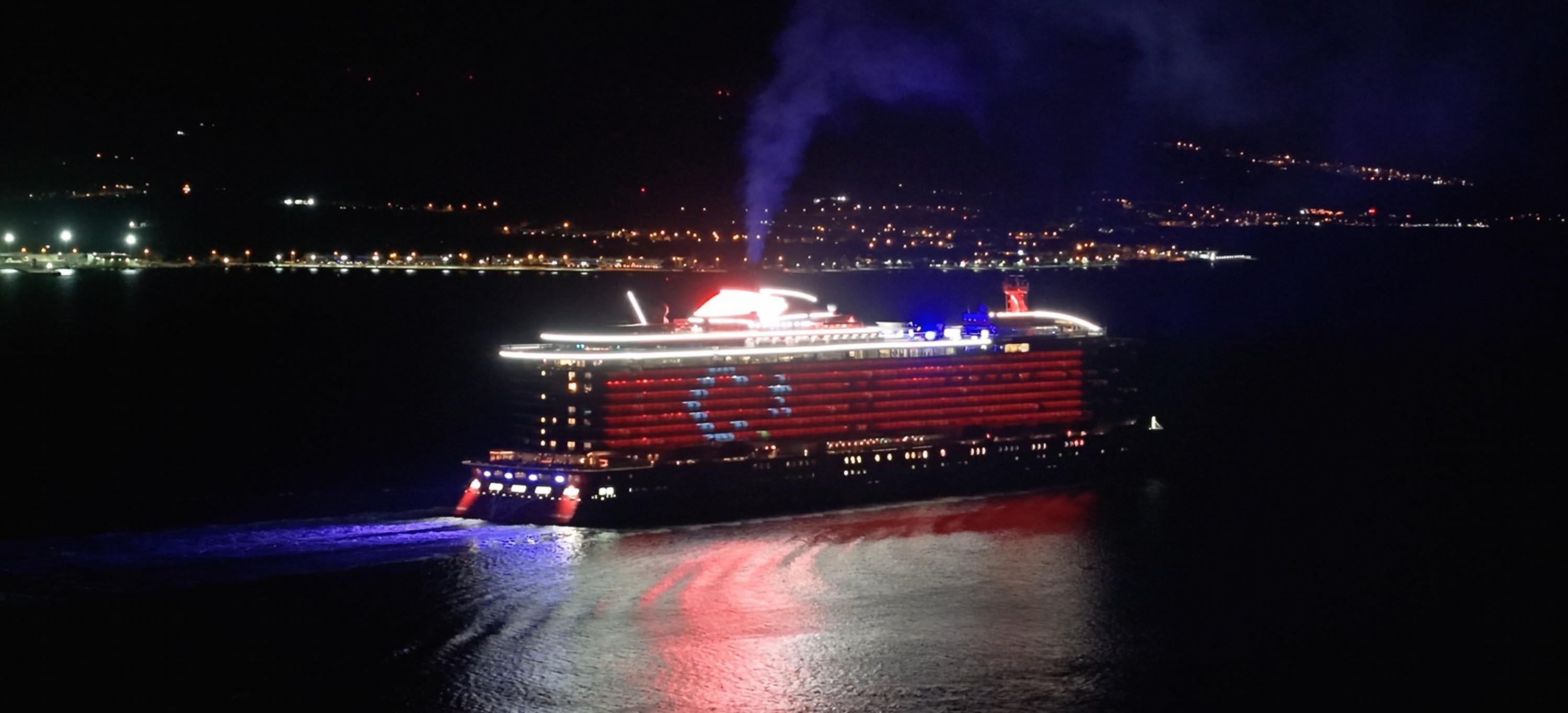 Kruvaziyer, gövdesine Türk bayrağı yansıtarak Çanakkale'yi selamladı
