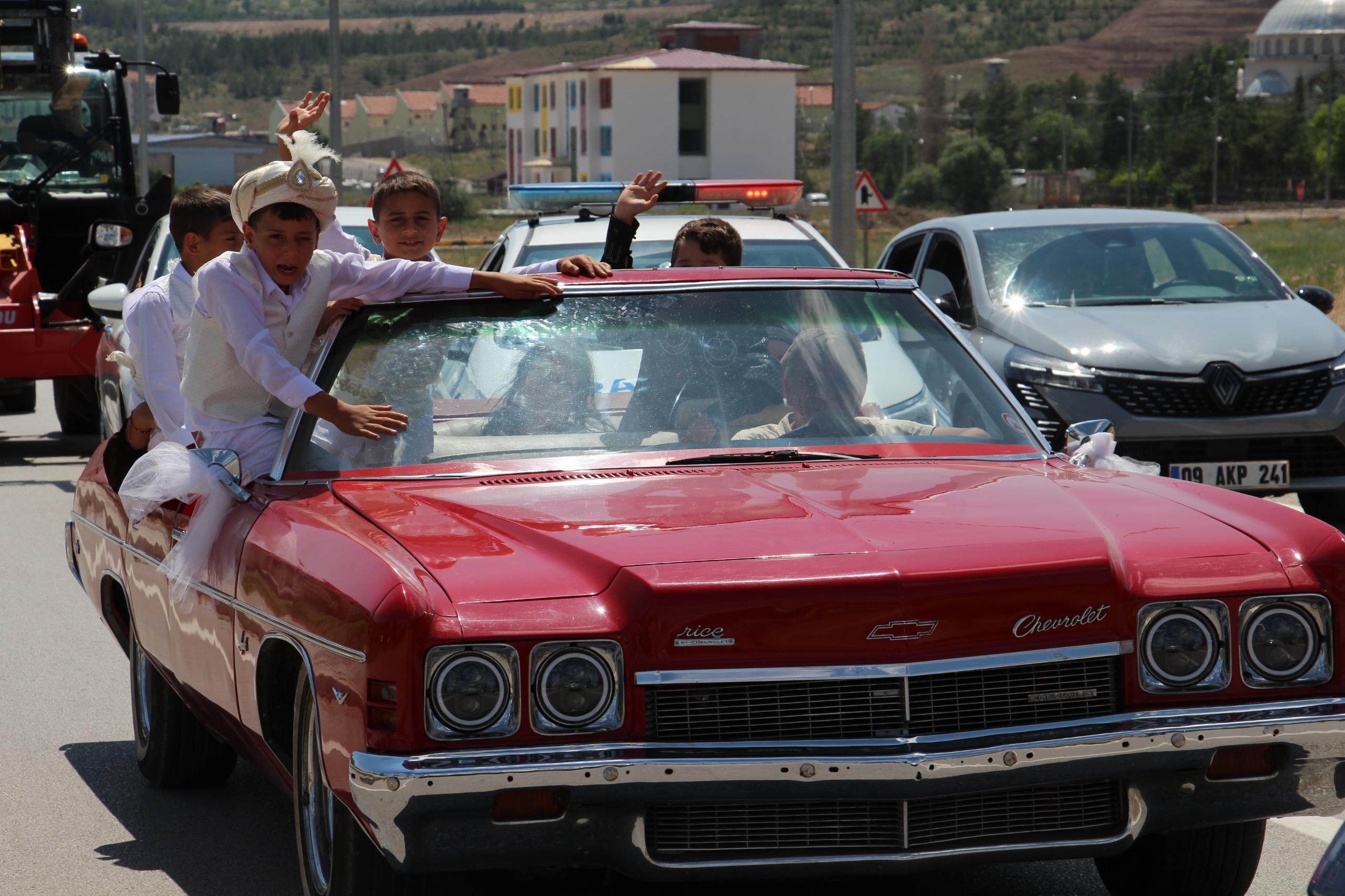 Çankırı’da sosyal yardım alan ailelerin çocukları için geleneksel hale dönüştürülen toplu sünnet töreninin bu yıl 529’uncusu gerçekleştirildi. Ahmet Yesevi Cami yanında süslenen klasik otomobillerin yanı sıra Vali M. Fırat Taşolar, Vakıflar Genel Müdürü Sinan Aksu ile kamu kurum ve kuruluşlarındaki yöneticilerin makam araçları, çocuklara tahsis edildi. Onlarca çocuk, aileleriyle birlikte süslenen araçlarla şehir turu attı.