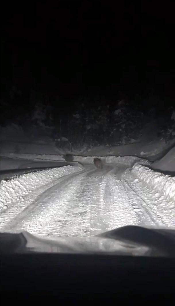 Ilgaz ilçesi Balcı köyünde, yoğun kar yağışı nedeniyle kapanan yolları açmak için çalışma yapan İl Özel İdaresi ekipleri, beklenmedik bir manzarayla karşılaştı. İş makineleriyle yolu açma ve kar temizleme çalışması yürüten ekiplerin önüne, ayı ve 3 yavrusu çıktı. Ekipleri fark eden ayıları, bölgeden uzaklaşıp ormana girerek gözden kayboldu. Çalışanlar o anları cep telefonu kamerasıyla kaydetti. (DHA)