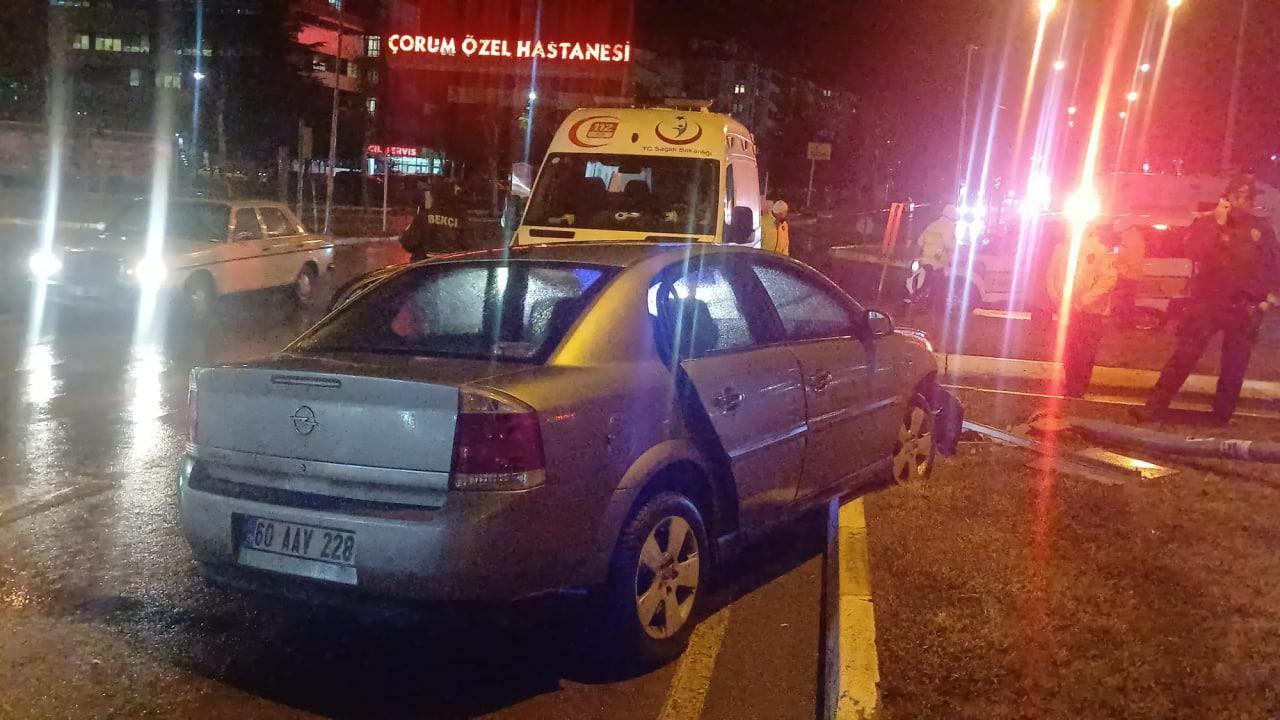 Kaza, Doktor İlhan Gürel Caddesi üzerindeki Özel Hastane Kavşağı’nda meydana geldi. Öznur K. yönetimindeki 60 AAV 228 plakalı otomobil yağış nedeniyle ıslanan yolda direksiyon kontrolünü kaybetti. Savrulan otomobil, orta refüje çıkarak yön levhalarının bulunduğu direğe çarptı. Kazada, otomobilde yolcu olarak bulunan Ela İ. (29) yaralandı. İhbar üzerine olay yerine polis ve sağlık ekipleri sevk edildi. Yaralı, olay yerindeki ilk müdahalesinin ardından ambulansla Hitit Üniversitesi Erol Olçok Eğitim ve Araştırma Hastanesi’ne kaldırılarak tedavi altına alındı.