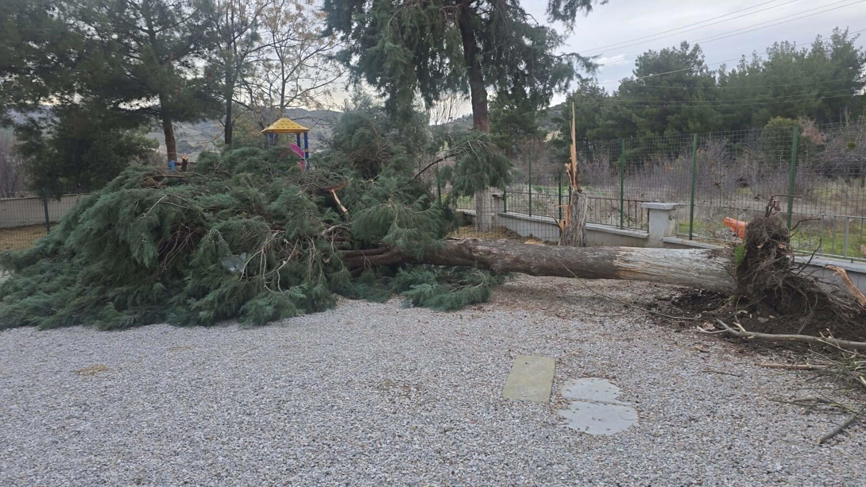 Buldan'da kuvvetli fırtına, baca kapağını uçurdu, ağacı devirdi