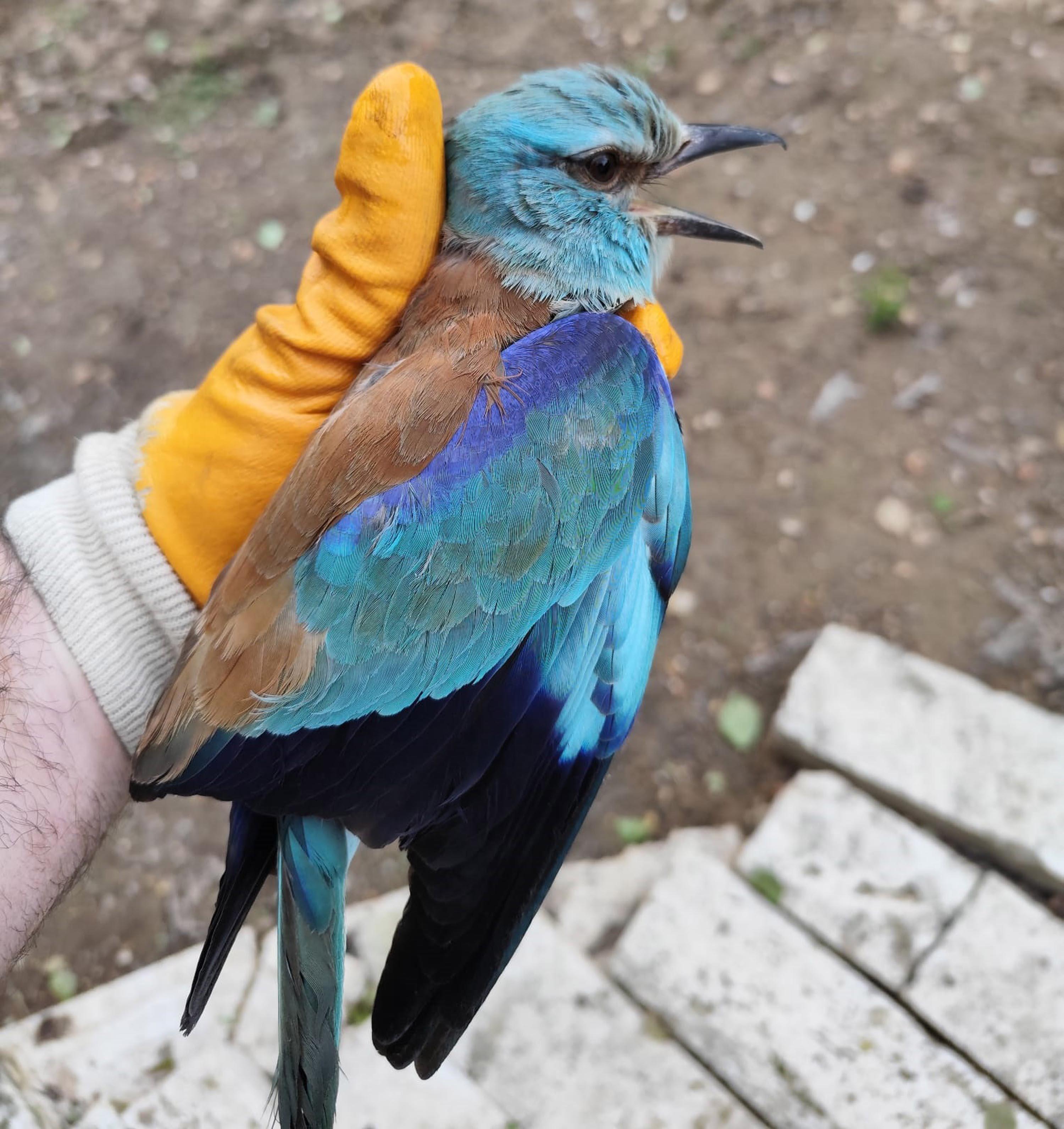Olay, dün Çal ilçesi kırsal Denizler Mahallesi'nde meydana geldi. Tarlasında çalışırken yerde hareketsiz yatan renkli kuşu fark eden çiftçi Eşref Eşbah, durumu Çal Belediyesi ekiplerine bildirdi. Bölgeye gelen zabıta ve belediye veterinerinin ilk incelemesinde kuşun, koruma altındaki türlerden olan gökkuzgun (Coracias garrulus) olduğu belirlendi. Kanadından yaralı olduğu tespit edilen kuş, tedavi altına alındı. Veterinerin incelemesinde, kuşun ayağında 'Museum Belgrade 3X16338' ibareli metal halka bulundu. Kuşun, Sırbistan'ın başkenti Belgrad'da bilimsel amaçla halkalandığı, ardından Avrupa'dan Afrika'ya uzanan göç rotası üzerinde Denizli'ye kadar uçarak burada yaralandığı değerlendirildi.