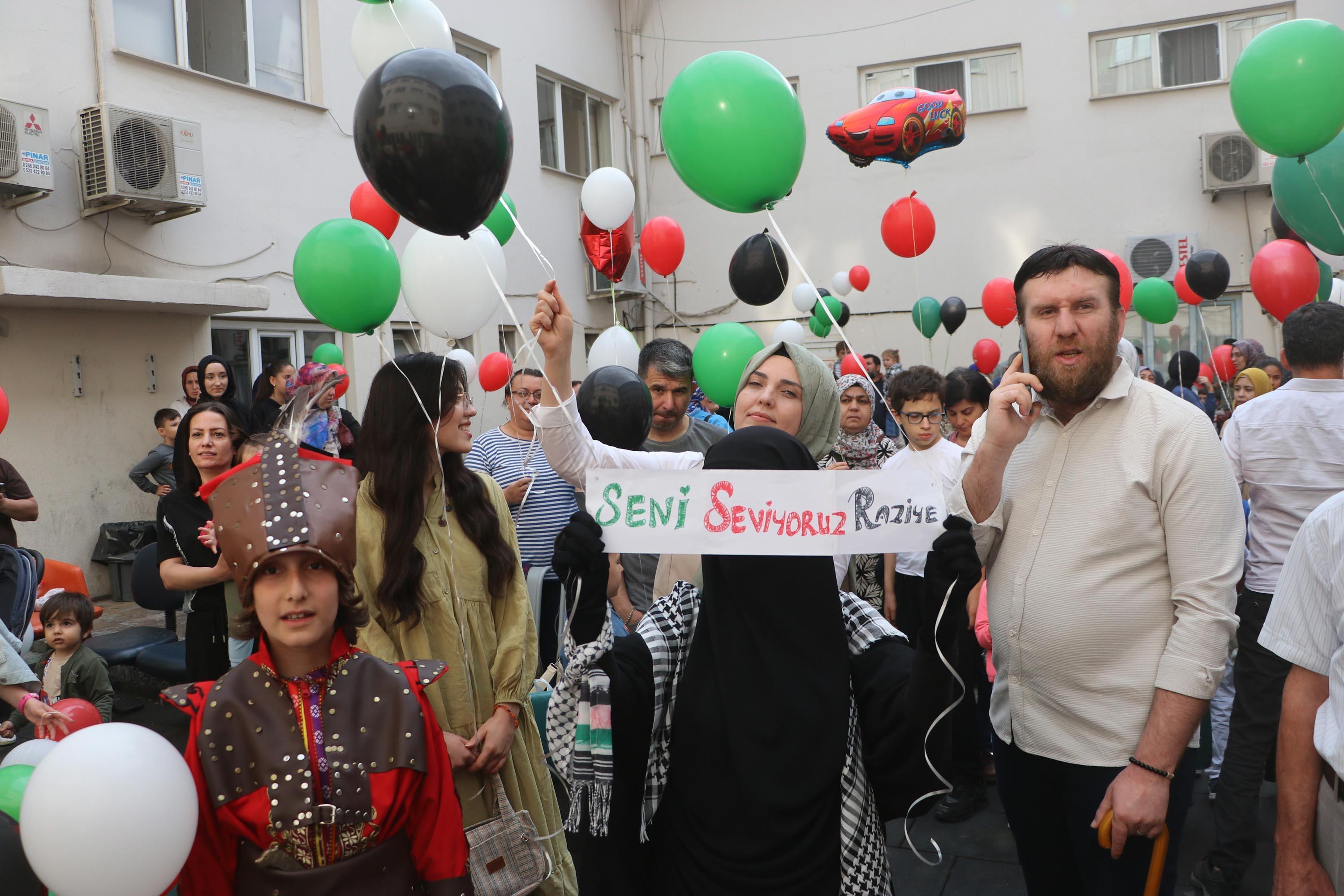 Kas hastası Raziye'nin isteği; Filistin bayrağını simgeleyen balonlar gökyüzüne bırakıldı