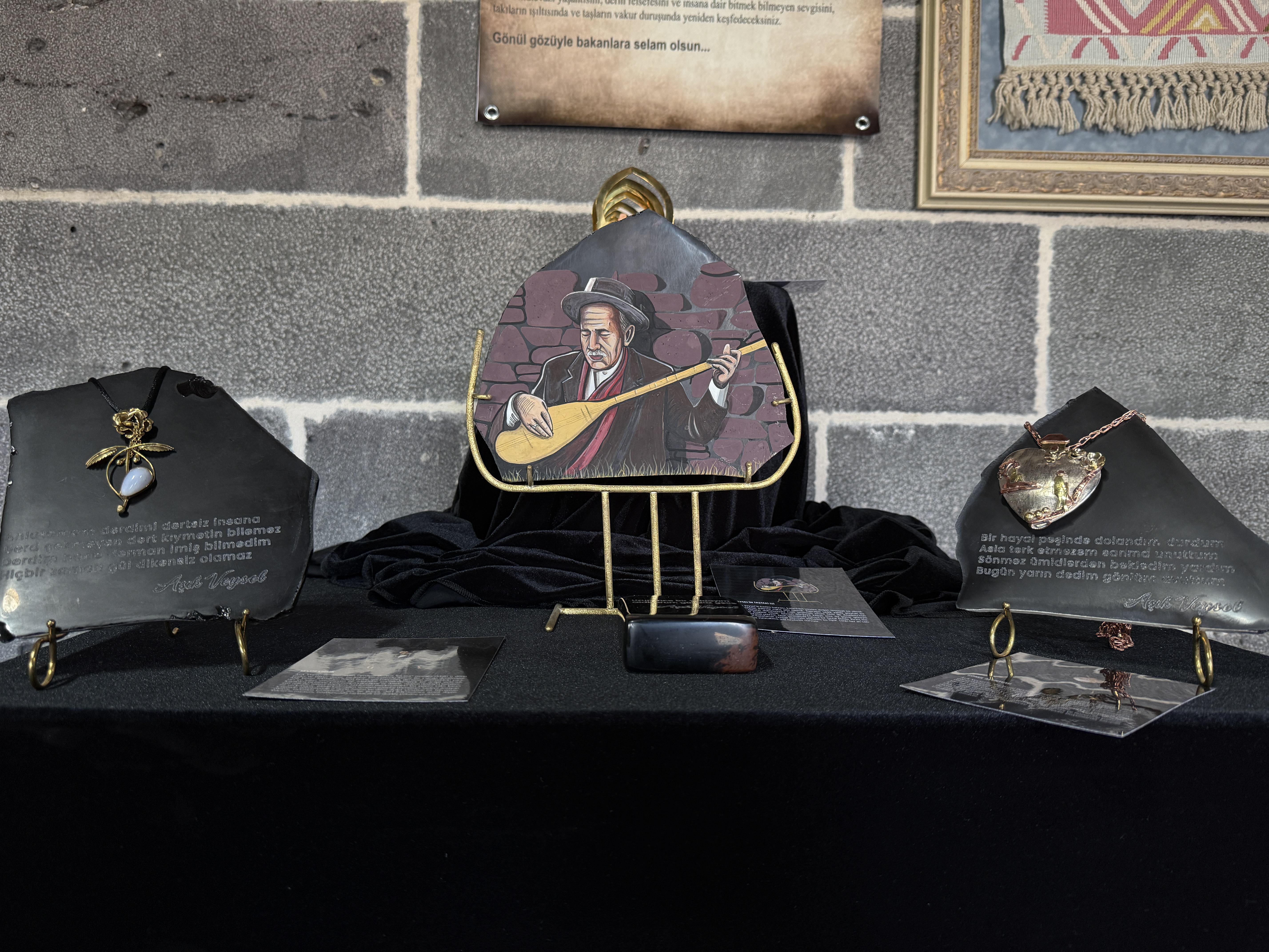 Hüseyin İÇLİ-Seyfettin EKEN/DİYARBAKIR, (DHA)- DİYARBAKIR Olgunlaşma Enstitüsü, halk ozanı Aşık Veysel’in felsefesini ve yaşam hikayesini ‘Karanlıktaki Aydınlık’ adlı özel koleksiyonla sanatseverlerin beğenisine sundu. Obsidyen taşlarına nakşedilen Aşık Veysel’in dizeleri, hayatından kesitler ve yaşadığı ev ile çevresi, kuyumculukla birleştirilerek 27 parça eser haline getirildi.