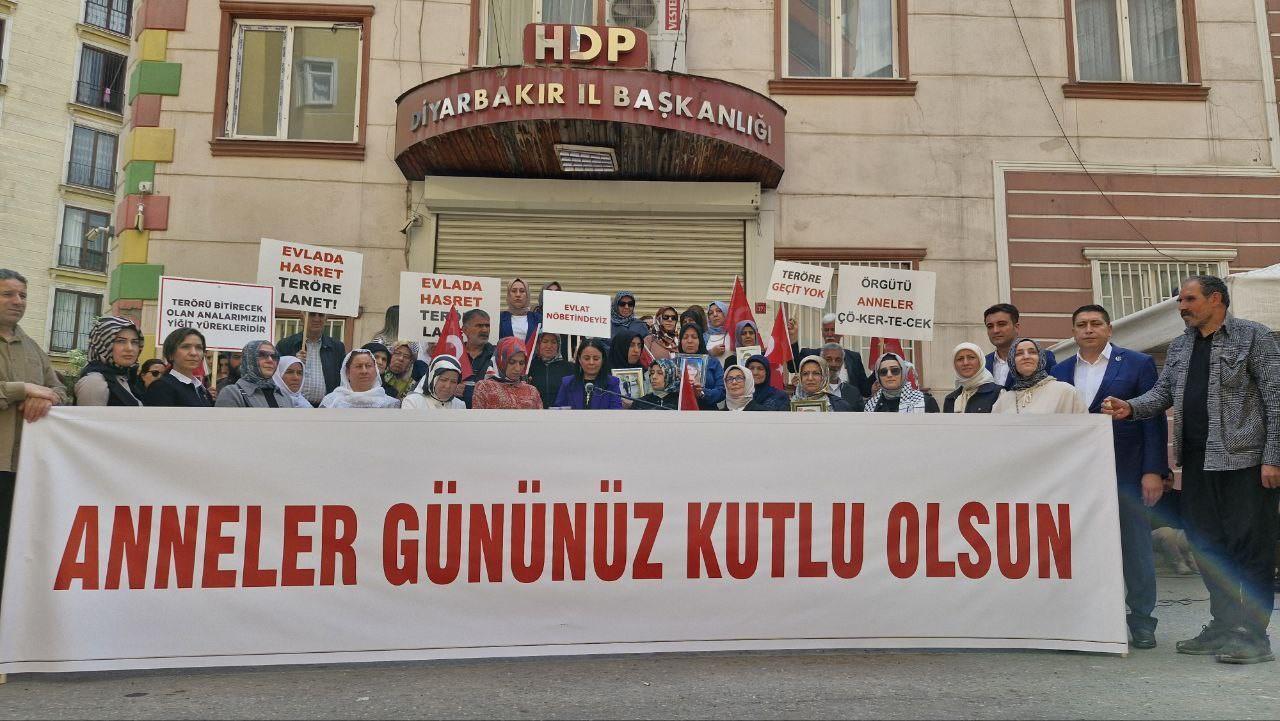 Diyarbakır’da HDP binası önünde evlat nöbetini sürdüren aileleri, Anneler Günü dolayısıyla İçişleri Bakan Müşaviri Hatice Atan ve bazı sivil toplum kuruluşları ziyaret etti. Ziyarette ailelerle görüşen Hatice Atan, “5 yıldır burada terör örgütüne meydan okuyan yiğit Diyarbakırlı annelerimizi sevgi ve saygıyla selamlıyoruz. Bugün sizler burada terör örgütünden evlatlarınızı istiyorsunuz. Bu en doğal hakkınız. 5 yıldır ailelerimiz evlat nöbetinde ve dünyanın her yerine sesini yükseltmeye çalışıyor. Devletimiz, ailelerimiz çocuklarına kavuşsun diye her türlü desteği veriyor. İnşallah diğer anneler de bir sonraki Anneler Günü’nde çocuklarına kavuşur” dedi.