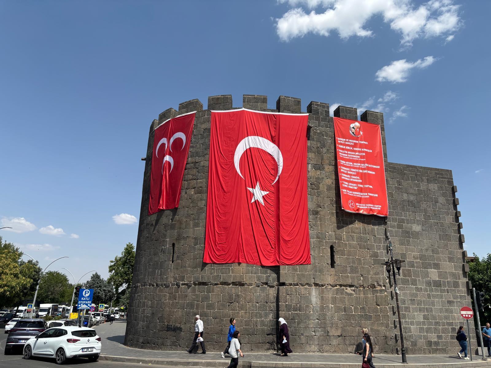 Diyarbakır surlarına MHP ve Türk bayrakları asıldı /Video eklendi