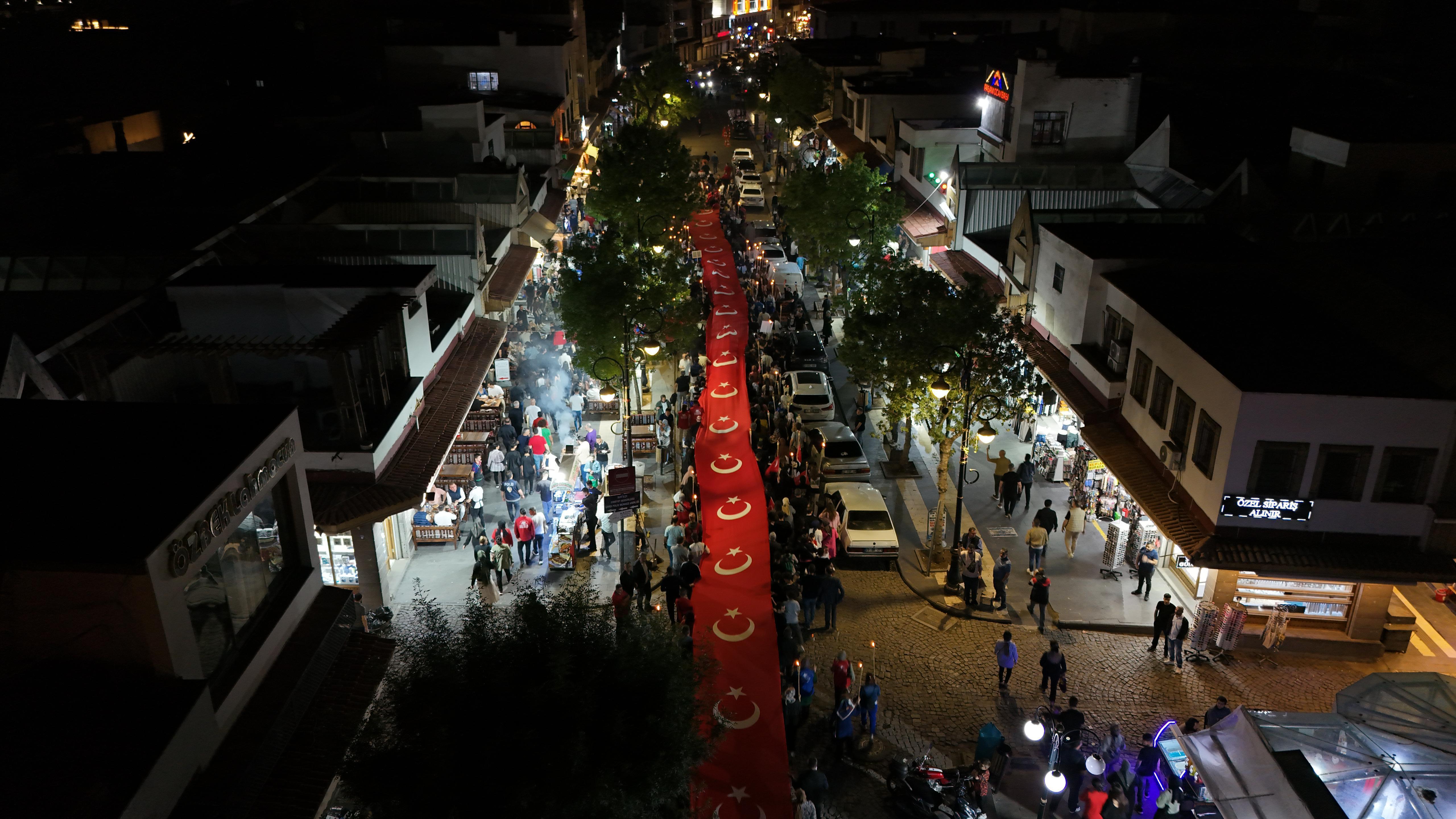 Diyarbakır'da 157 metrelik Türk bayrağıyla 'Fener Alayı' yürüyüşü