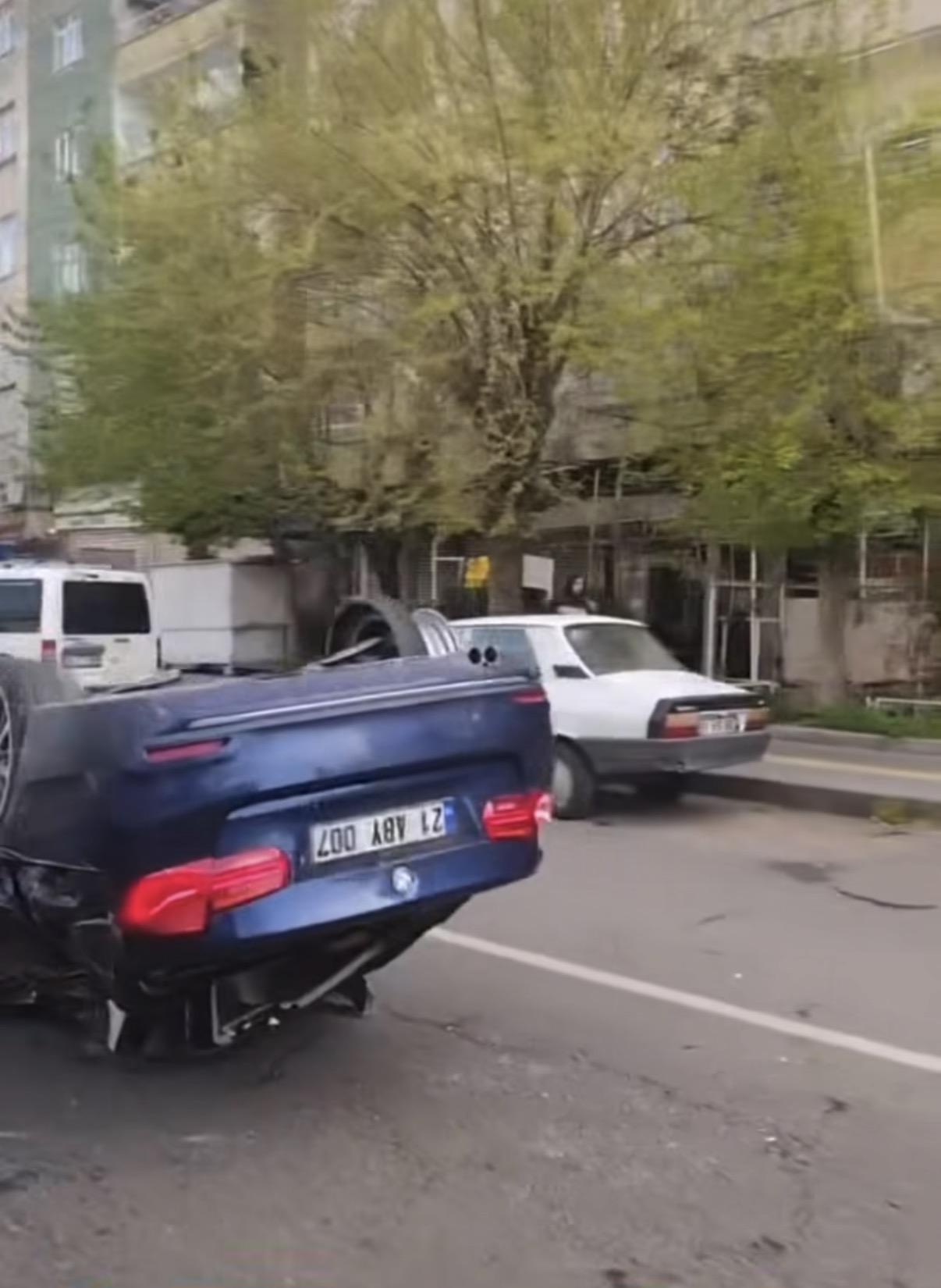 Hüseyin İÇLİ-Seyfettin EKEN/DİYARBAKIR, (DHA)- DİYARBAKIR’ın Bağlar ilçesinde 4 aracın karıştığı kazada bir otomobil devrilerek ters döndü, 2 kişi yaralandı.
