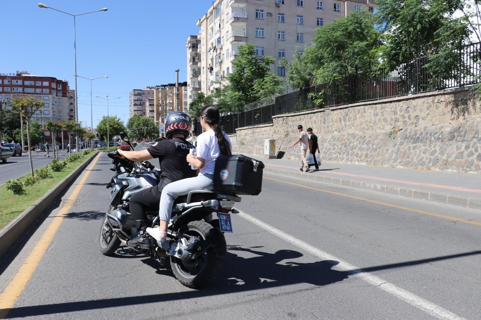 Diyarbakır’da 122 okulda öğrenciler LGS sınavına girdi. LGS sınavı için, İl Emniyet Müdürlüğü Asayiş Şube Müdürlüğü bünyesindeki motosikletli Yunus timleri, okul önlerinde görev aldı. Önceki sınavlarda isimleri sürekli karıştırılan ve birçok öğrencinin bu nedenle geç kaldığı, Yenişehir ilçesi Mehmet Akif Ersoy Bulvarı üzerindeki Yeni Diyarbakır Lisesi ile 2 kilometre mesafede Şehitlik semtindeki Diyarbakır Lisesi önünde 4 ekip görevlendirildi. Okulların önüne gelip sınav yerini karıştırdıkları belirlenen toplam 11 aday, motosiklete bindirilerek, sınava girecekleri okula götürüldü. O anlar ise kameraya yansıdı.