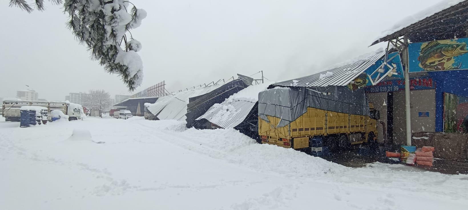 Diyarbakır'ın Bağlar ilçesinde, Yeni Hal’de bazı iş yerlerinin çatısı, üzerlerindeki karın ağırlığına dayanamayarak çöktü. Çatıların altındaki 13 araçta hasar meydana geldi.
