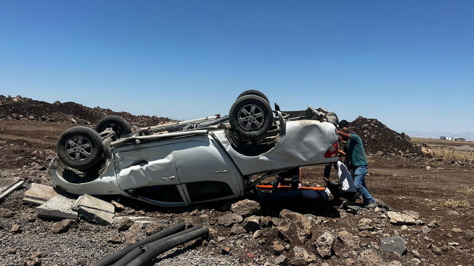 Diyarbakır’da rögar çukuruna girerek ters dönen kamyonetin sürücüsü yaralandı