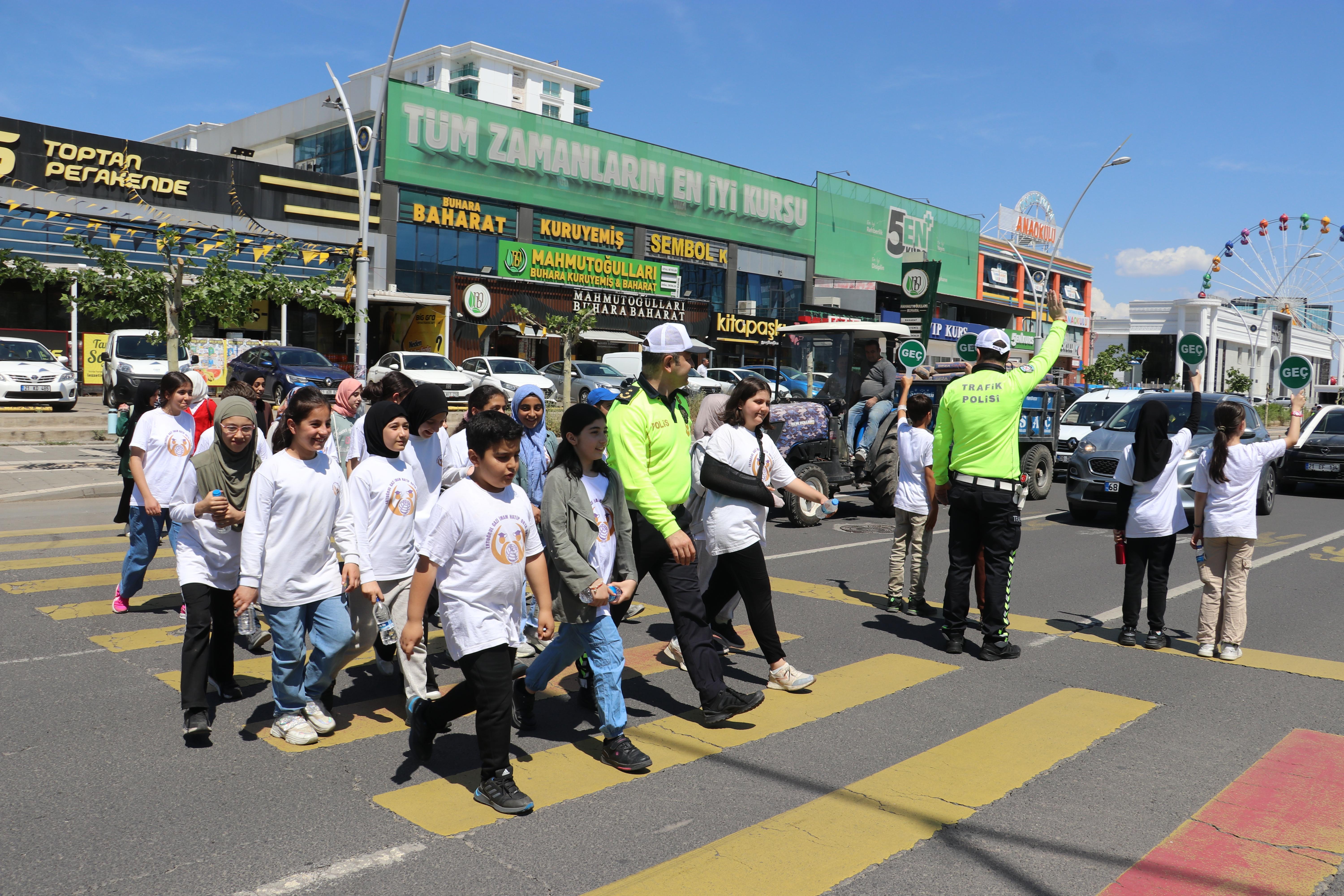 Kayapınar ilçesi Fırat Bulvarı’nda, trafik haftası etkinlikleri kapsamında Vali Murat Zorluoğlu’nun katılımıyla çocuklara farkındalık eğitimi verildi. Programa ayrıca İl Emniyet Müdürü Fatih Kaya ile İl Milli Eğitim Müdürü Murat Küçükali de katıldı. Programda farklı okullardan gelen ortaokul öğrencilerine, stantta İl Emniyet Müdürlüğü Trafik Denetleme Şube Müdürlüğü’ne bağlı ekipler tarafından trafik kurallarıyla ilgili bilgiler verildi. Etkinlikte trafik polisleri, öğrencilerin güvenli şekilde yolun karşısına geçmelerini uygulamalı olarak gösterdi.