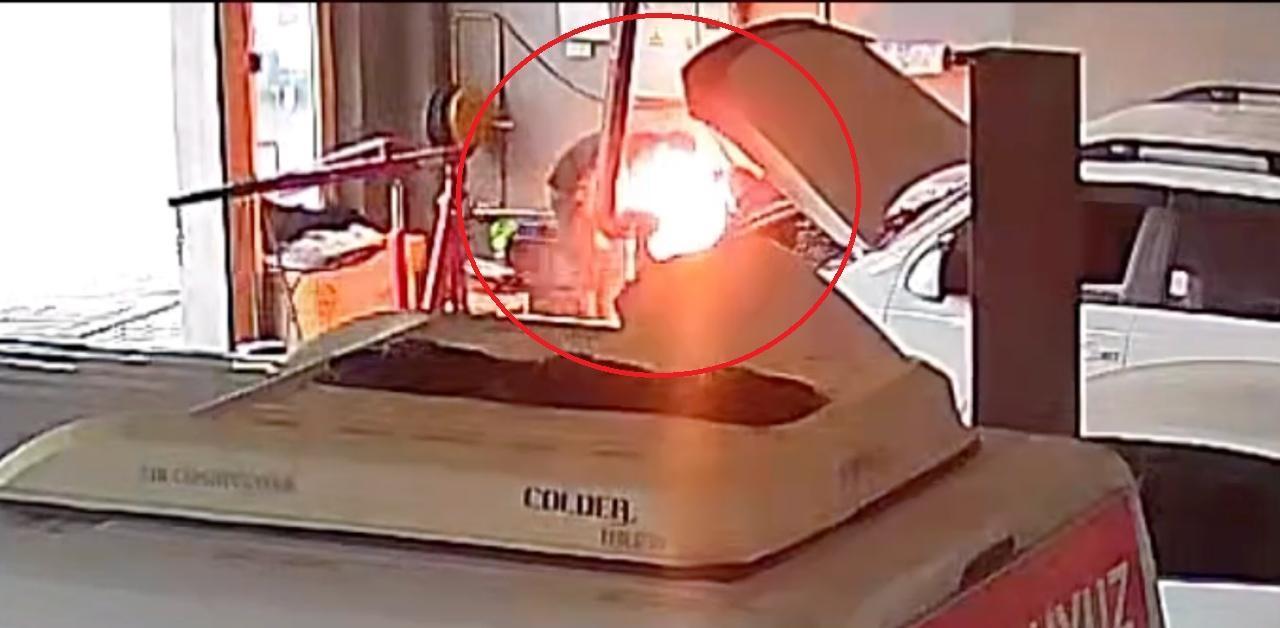Hüseyin İçli-Seyfettin Eken/DİYARBAKIR(DHA)- DİYARBAKIR’da, bir oto bakım dükkanında ısınmak için kullanılan sobaya yağ dökülmesi sonucu kısa süreli parlama meydana geldi. O anlar güvenlik kamerasına yansırken 1 çalışan yüzünden hafif yaralandı.