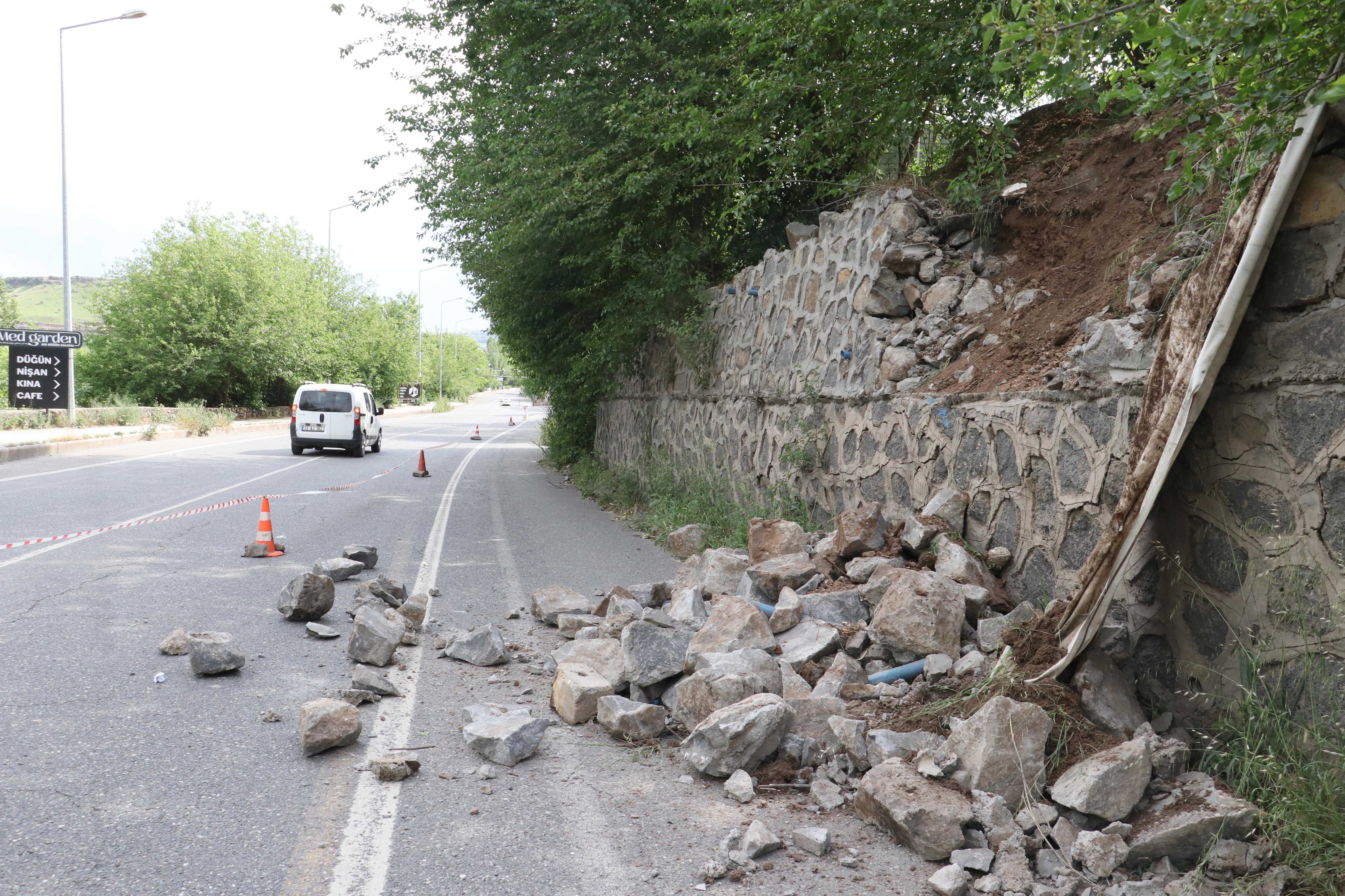 Diyarbakır’da yol kenarındaki istinat duvarında kısmi çökme