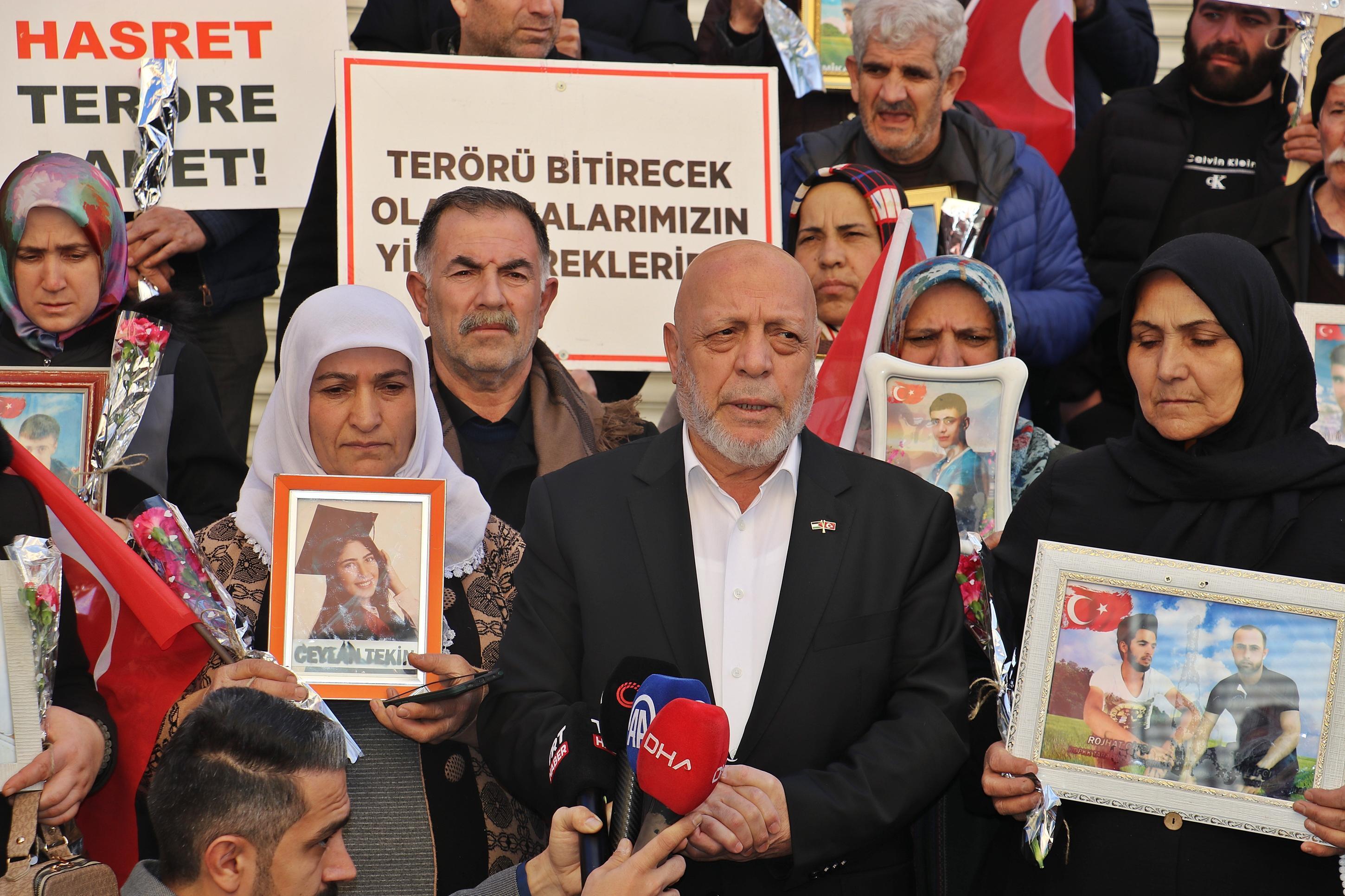 Selim KAYA-Seyfettin EKEN/DİYARBAKIR, (DHA)- HAK İşçi Sendikaları Konfederasyonu (HAK-İŞ) Genel Başkanı Mahmut Arslan, HDP Diyarbakır İl Başkanlığı önünde evlat nöbeti tutan aileleri ziyaret etti.