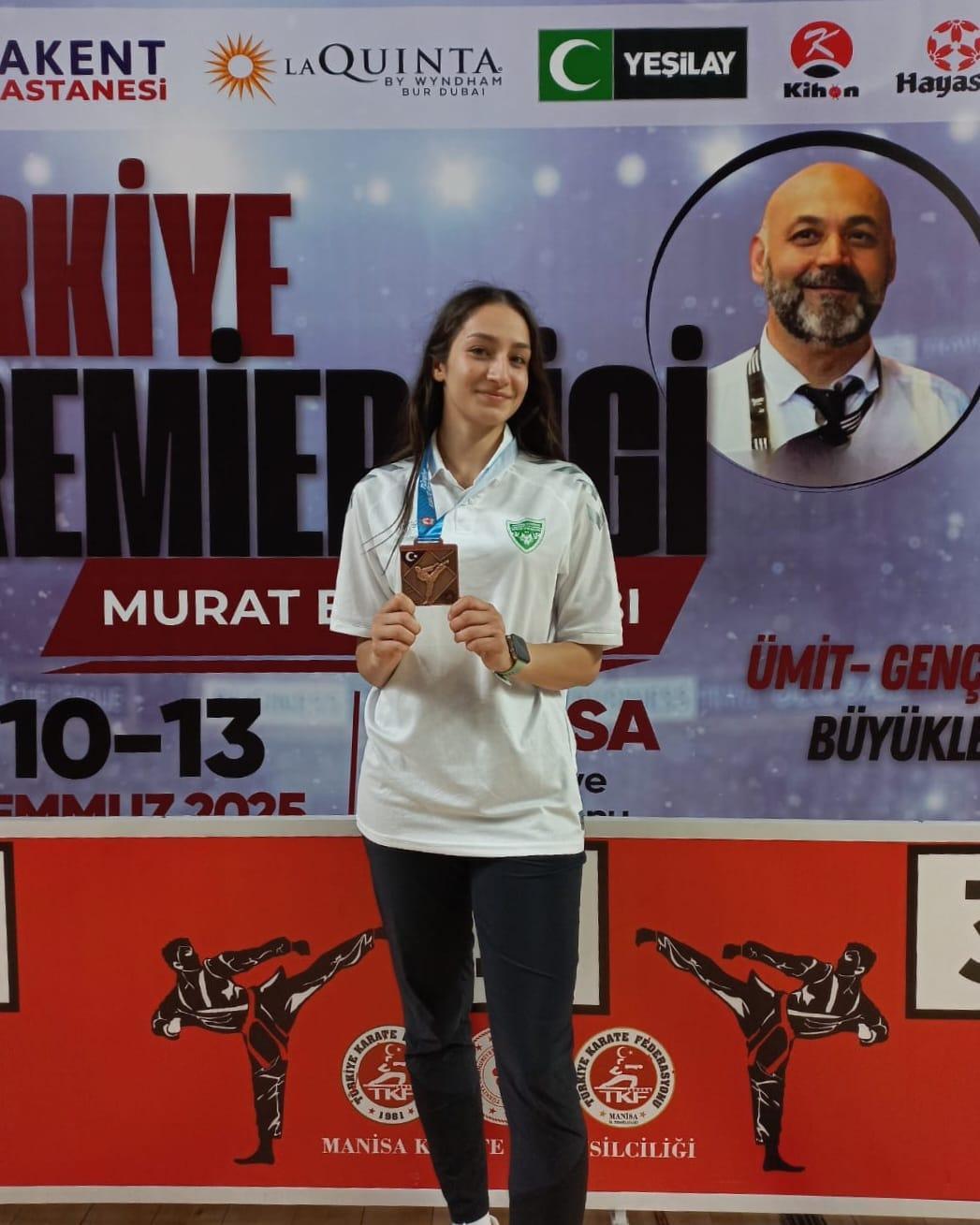 Seyfettin EKEN/DİYARBAKIR, (DHA)- MANİSA’da antrenör Murat Eşsiz anısına düzenlenen Karate Premier Ligi’nin 3’üncü etabında milli sporcu Sena Kızılaslan bronz madalya kazandı.