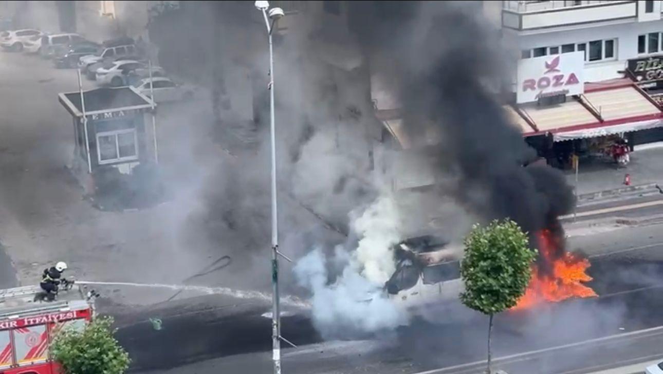 Özcan ARGİN-Seyfettin EKEN/DİYARBAKIR, (DHA)- DİYARBAKIR'da şehir içi yolcu taşımacılığı yapan minibüs, seyir halindeyken alev aldı. Minibüsün yandığı anlar, cep telefonu kamerasıyla kaydedildi.