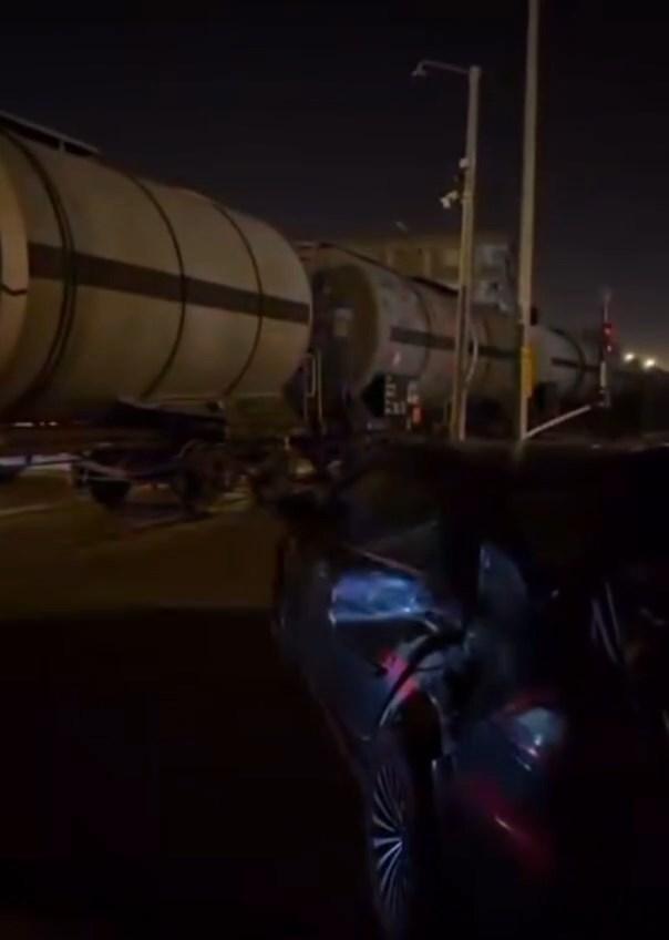 Yük treni, hemzemin geçitte otomobile çarptı; sürücü kaçtı