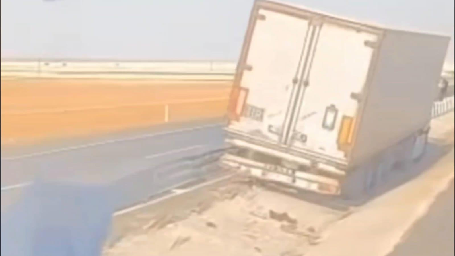 Ahmet AKKUŞ/NUSAYBİN(Mardin),(DHA)- MARDİN’in Nusaybin ilçesinde kontrolden çıkan TIR, yol ortasındaki demir bariyerlere çarptı.