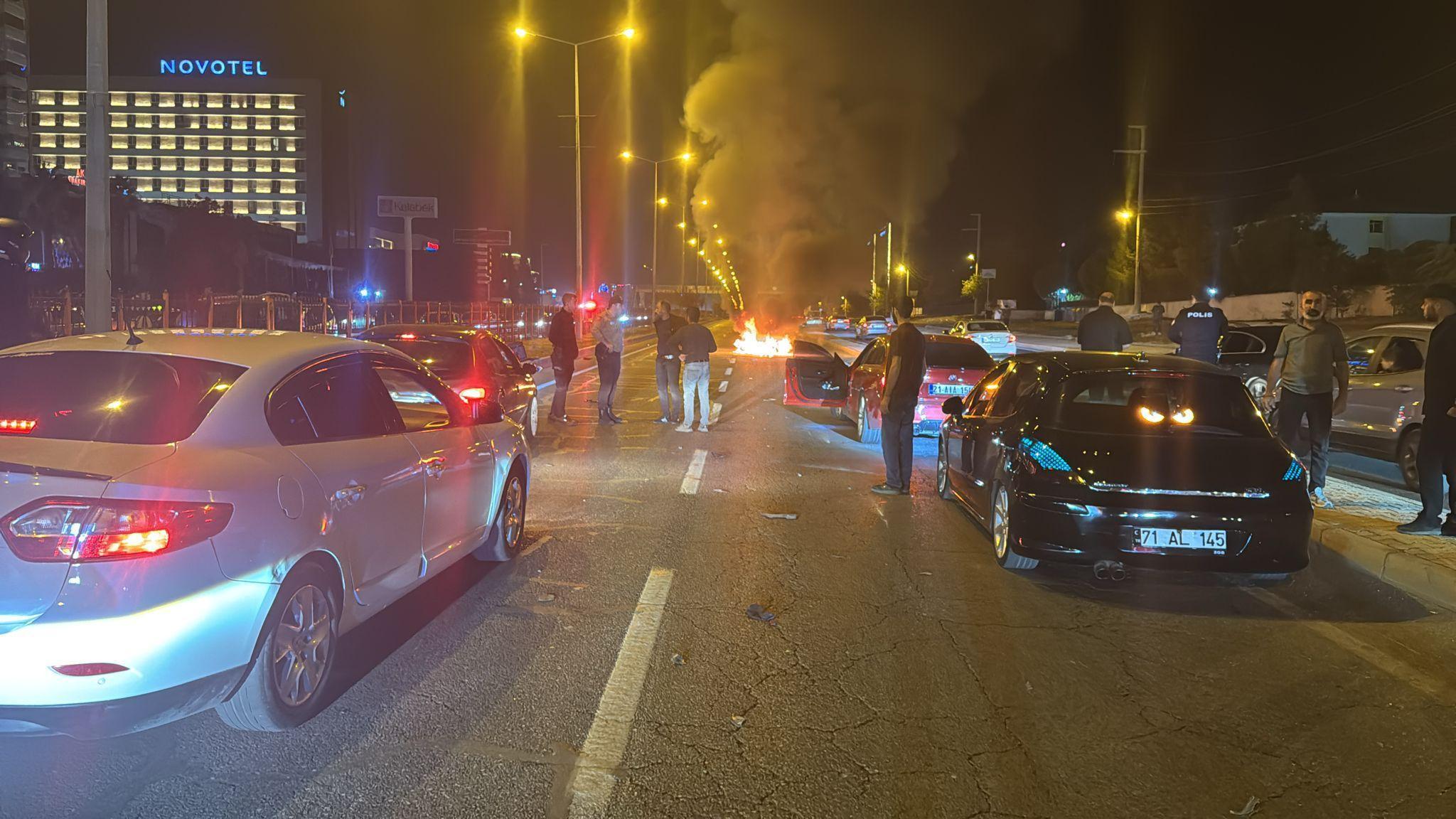 Gıyasettin TETİK-Seyfettin EKEN/DİYARBAKIR, (DHA) - DİYARBAKIR’da, yaya geçidinde bekleyenlere yol vermek için duran motosiklete, arkadan gelen otomobil çarptı. Kaza sonucu alev alan motosiklet yanarken, sürücüsü yaralandı.