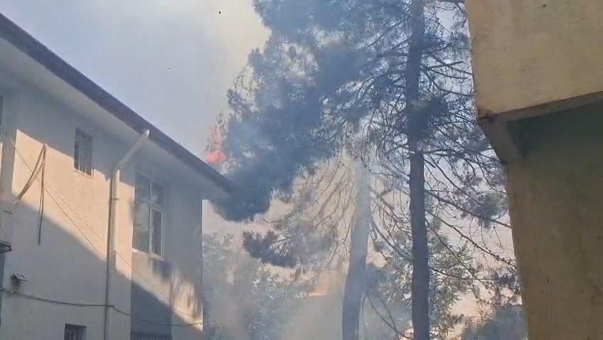 Araştırma merkezinin bahçesinde çıkan yangın, yan binanın çatısına sıçradı
