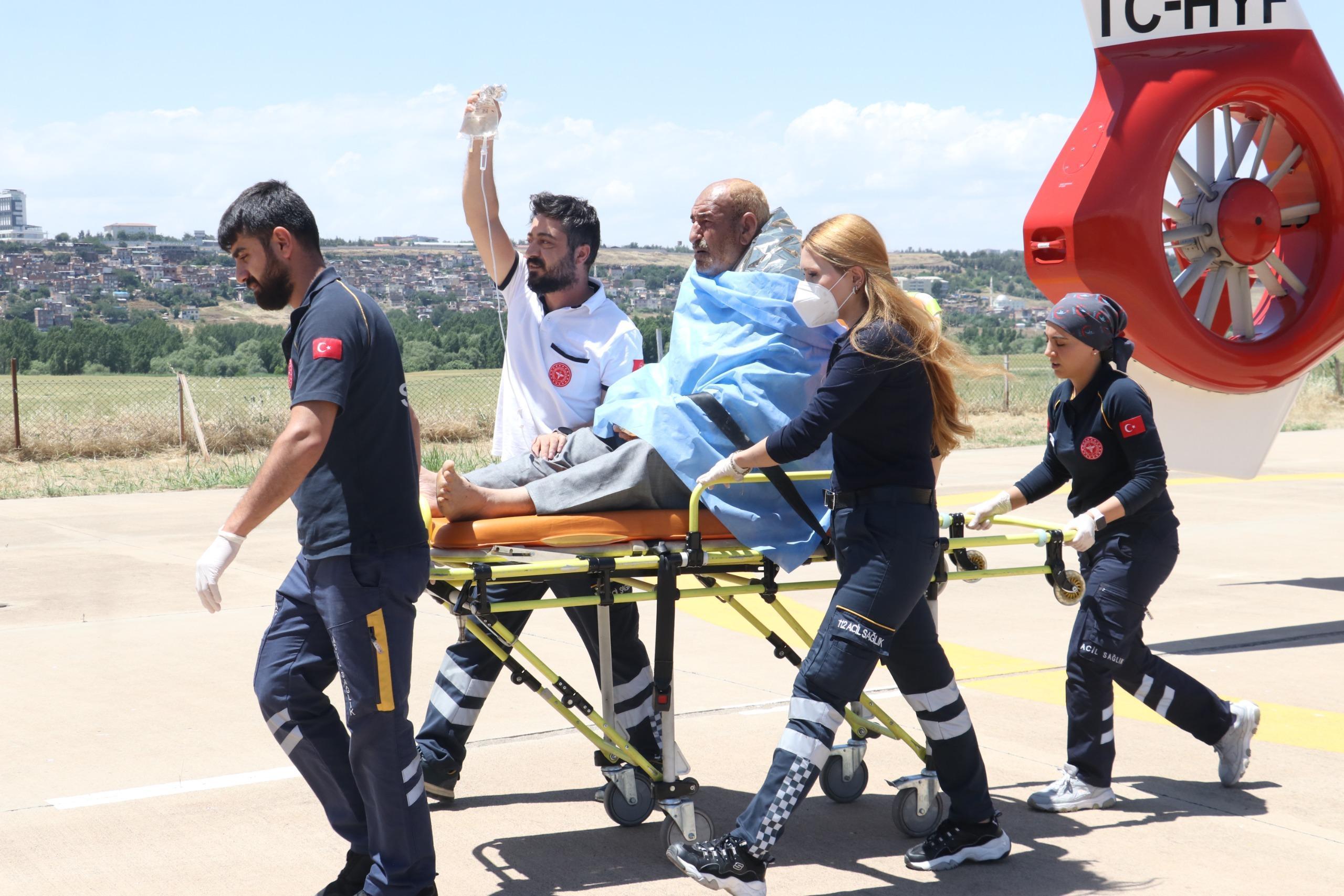 Baş ve göğüs kısmında 2’nci derece yanık oluşan Abdulselam Demir’in Diyarbakır’a sevk edilmesine karar verildi. Demir için Acil Sağlık Hizmetleri'ne bağlı 'Sağlık Komuta' ile görüşme yapıldı. Ardından İl Sağlık Müdürlüğü'nden talep edilen ambulans helikopter, kısa sürede ilçeye ulaştı. Abdulselam Demir, ambulans helikopterle alınarak Dicle Üniversitesi Hastanesi pistine iniş yaptı. Burada Acil Sağlık Hizmetleri ekibine teslim edilen Abdulselam Demir, ambulansla Dicle Üniversitesi Acil Servisi’ne götürülerek tedaviye alındı. İlçede tedavi gören Halime Demir’in sağlık durumunun iyi olduğu öğrenildi. (DHA)