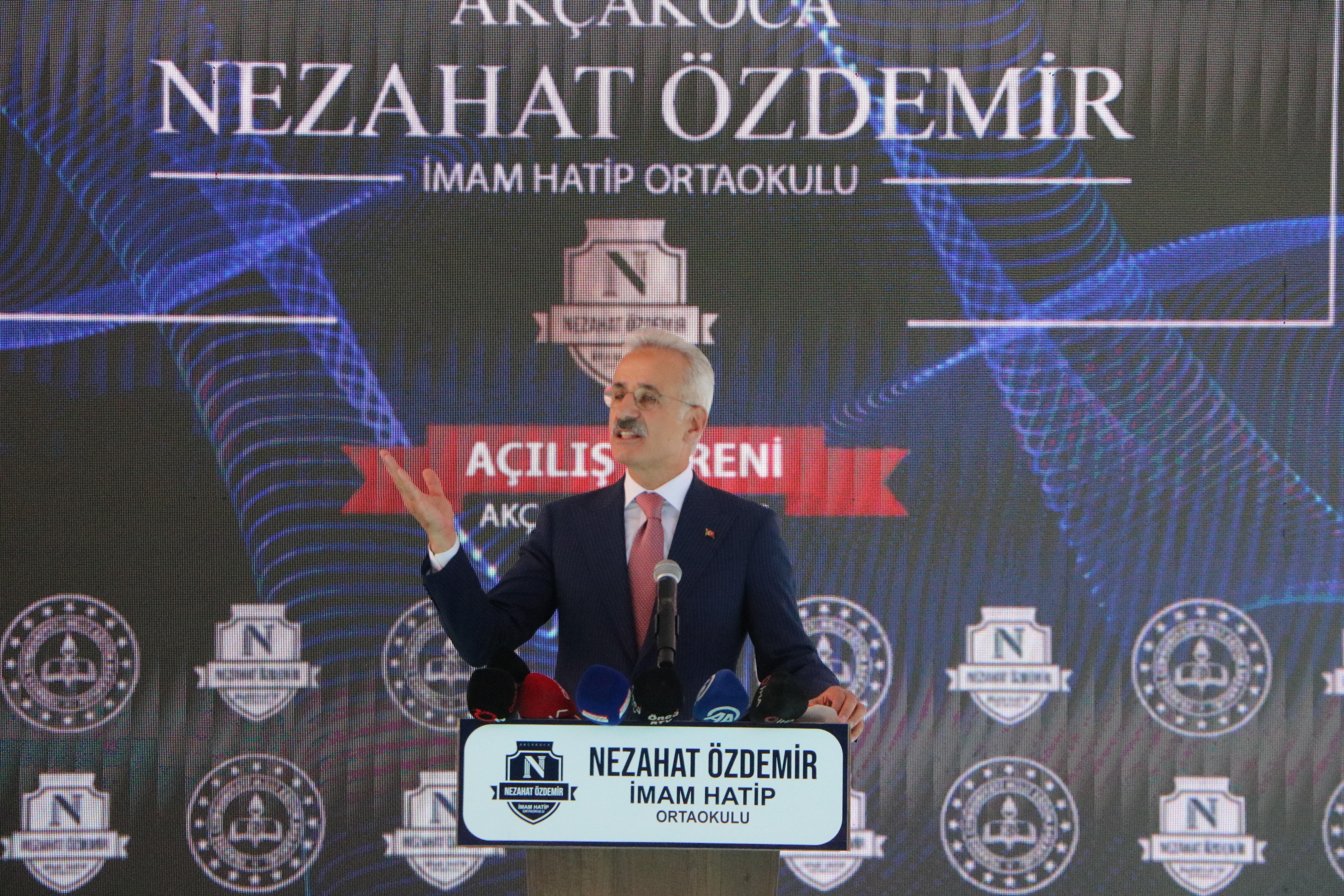 Ulaştırma ve Altyapı Bakanı Abdulkadir Uraloğlu, Düzce’nin Akçakoca ilçesi Yalı Mahallesi İstanbul Caddesi'nde 3 bin metrekare kapalı alana sahip olan ve MÜSİAD Genel Başkanı Burhan Özdemir’in annesi adına yaptırdığı Nezahat Özdemir İmam Hatip Ortaokulu’nun açılışına katıldı. Bakan Uraloğlu’nun yanı sıra törene Düzce Valisi Selçuk Aslan, Belediye Başkanı Faruk Özlü, MÜSİAD Genel Başkanı Burhan Özdemir, protokol üyeleri ve öğrenciler katıldı.
