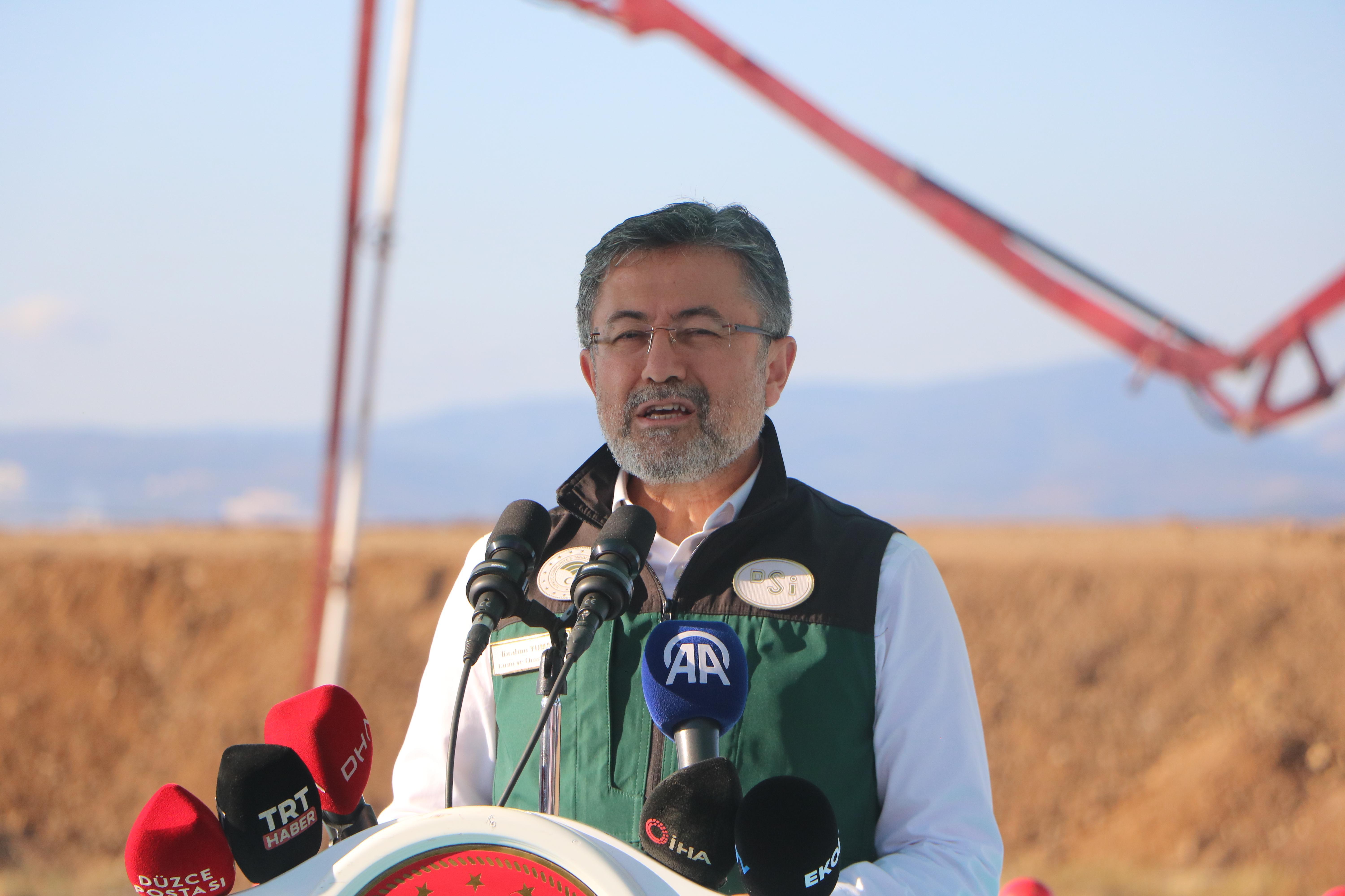 Bakan Yumaklı ve törene katılanlar, okunan duaların ardından tesisin temelini attı. (DHA)