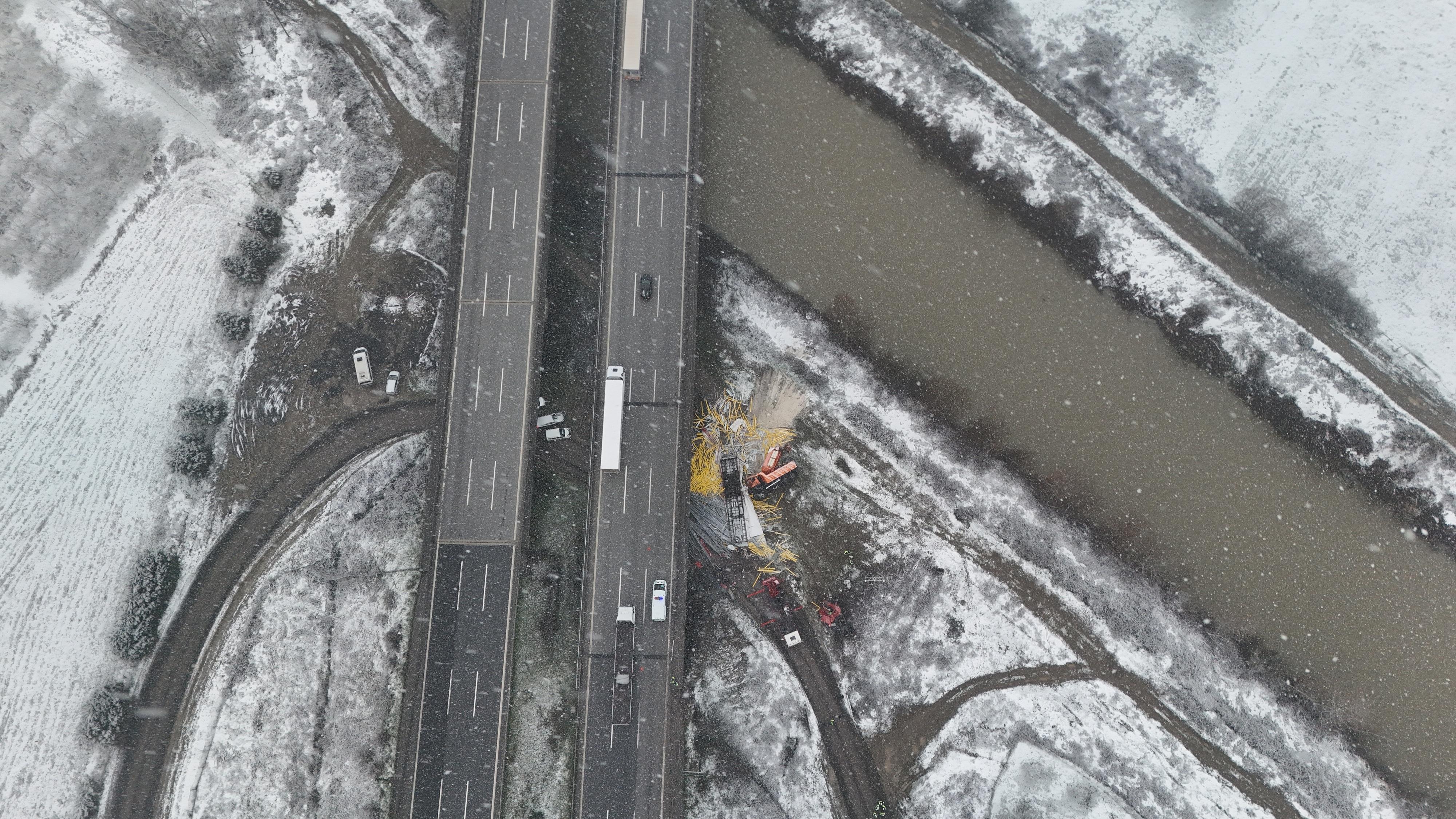 Tezcan SOLMAZ/DÜZCE, (DHA)- DÜZCE’de Anadolu Otoyolu’nda TIR, kar küreme ve tuzlama çalışması yapan Karayolları kamyonuna arkadan çarptı. Savrulan araçlar köprüden uçarken, kazada şoförler Recep Gülaçtı (49) ve Metin Çakmak (50) hayatını kaybetti.