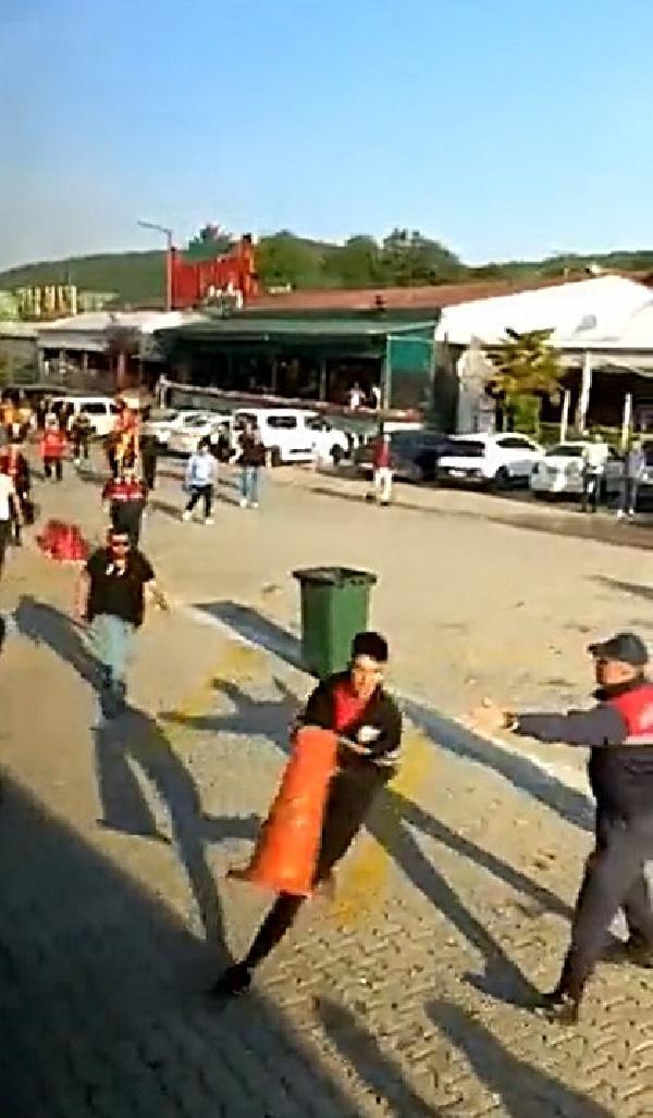 Başka bir olay yaşanmaması amacıyla taraftarların bulunduğu otobüslerin mola vermeden yollarına devam etmesi için önlem alındı. (DHA)