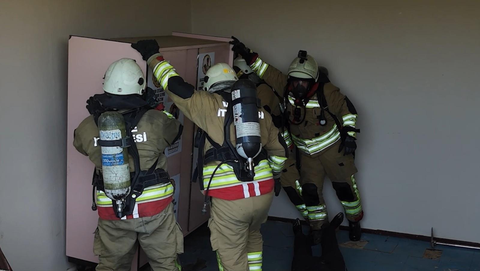Düzce Belediyesi İtfaiye Müdürlüğü ekipleri, tatbikat gereği ev yangınında mahsur kalan vatandaşı kurtarmak üzere belirtilen adrese gitti. Kısa sürede olay yerine ulaşan ekipler, binaya girerek ilk olarak dolabın altında kalan cansız mankeni kurtarmaya çalıştı. İtfaiye Müdürü Mehmet Ali Kahraman'ın dolabın içerisine bakmalarını istediği itfaiye erleri, dolabın kapağını açtıklarında kendi çocuklarının fotoğraflarını ve Babalar Günü ile ilgili yazdığı mesajları gördü. İtfaiyeci kıyafeti giyen çocuklar ise ellerinde çiçeklerle babalarının yanına gitti. Karşısında çocuklarını gören itfaiyeciler, duygu dolu anlar yaşadı. Bir itfaiyecinin eşi de pusette bebeklerini getirdi.
