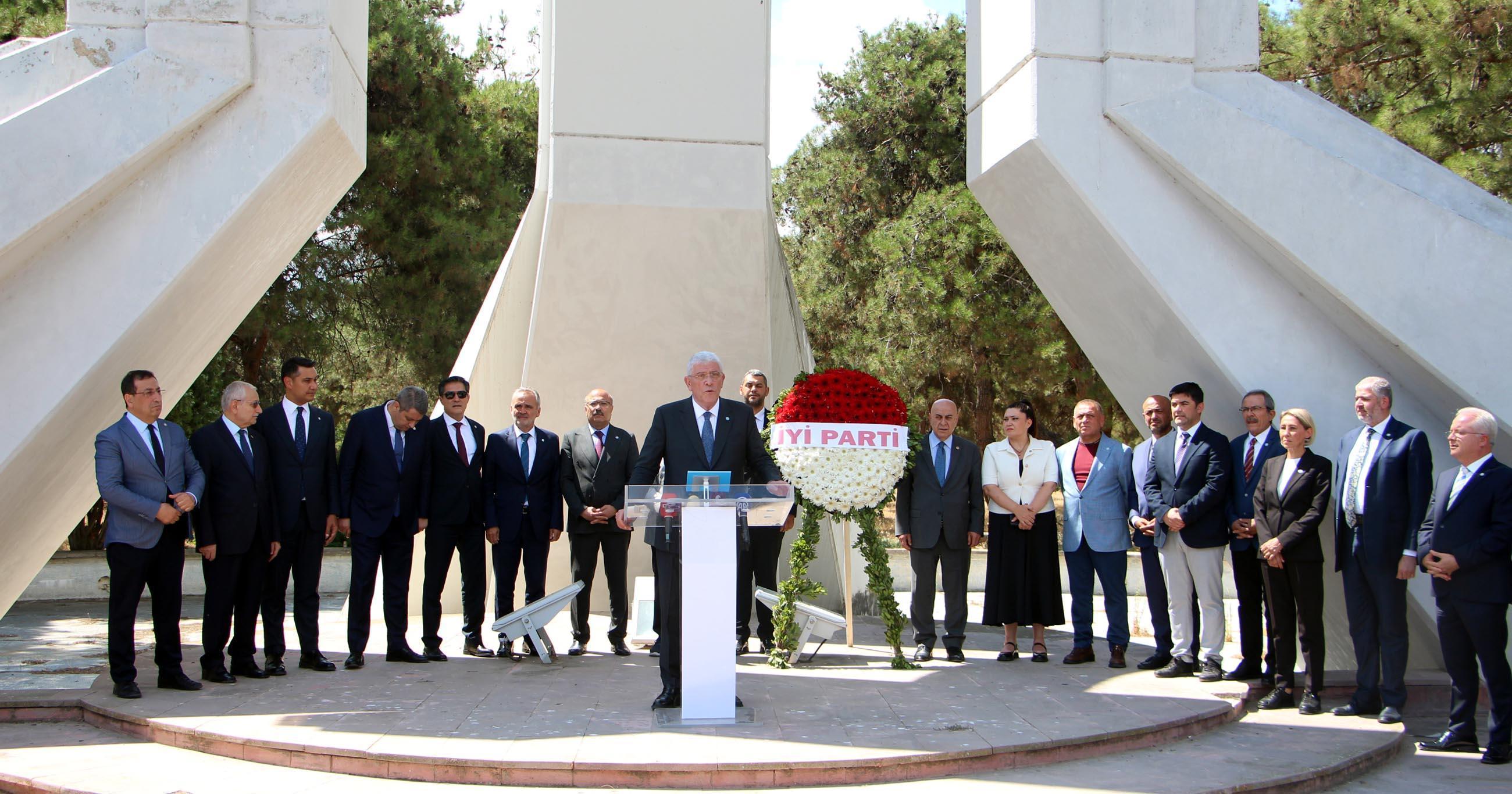 Şehit ailelerine, bir siyasi partinin genel başkanı olarak hitap etmediğini söyleyen Dervişoğlu, "Bir siyasi partinin genel başkanı sıfatıyla konuşuyor olarak da görmeyin beni, ailenizden biri olarak görün. Sevinçleri biliyorsunuz paylaşırsanız büyür. Acılar ise paylaşılarak azalır. Bu millet, bu anneler, bu babalar, bu eşler, bu yetimler acılarına, acılarını yüreklerine taş basarak hafifletmeye çalıştılar. Şimdi ise sanki bunu yapanlara bir mükafat veriliyormuşçasına bir durumla karşı karşıyayız. Bu duruma sonuna kadar direneceğiz. Evlatlarınızın sebepsiz yere şehit olmadığını dünya aleme, cümle aleme de göstereceğiz. Ben de sizin bir evladınızım. Dediğim gibi 85 milyon evladınız var. 85 milyon yanınızda sizinle birlikte saf tutacak kader arkadaşınız, insanınız var, aileniz var. Bu aile karşı karşıya bulunduğumuz sorunların aşılmasını temin edebilecek büyük bir güce ve kudrete sahiptir. Sizin çocuklarınız bu memleketi vatan, bunun üzerinde yaşayanları da millet kılmak için yaşattılar. Hepinizin acısı da onların ruhları kadar mübarektir benim nezdimde. Ben sonuna kadar kardeşiniz, ailenizin bir ferdi ve evladınız olarak yanınızda saf tutacağım, saf tutmaya devam edeceğim. Sizin söylemeniz gereken ne varsa, sizin adınıza şerefim ve namusum üzerine söz veriyorum ki ben söyleyeceğim" diye konuştu.