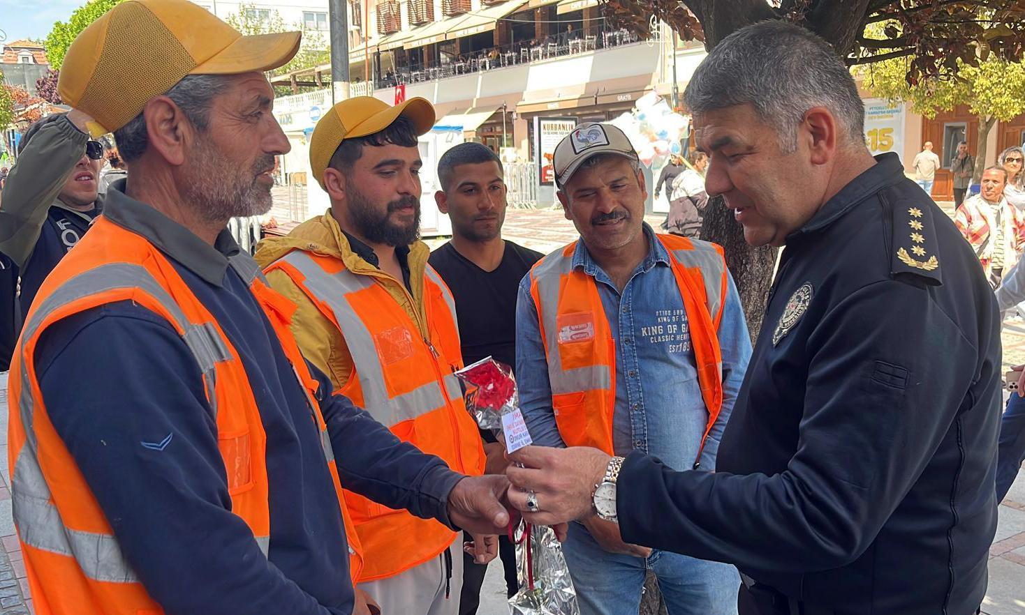 Edirne Emniyet Müdürü Karaburun, işçilere karanfil dağıttı