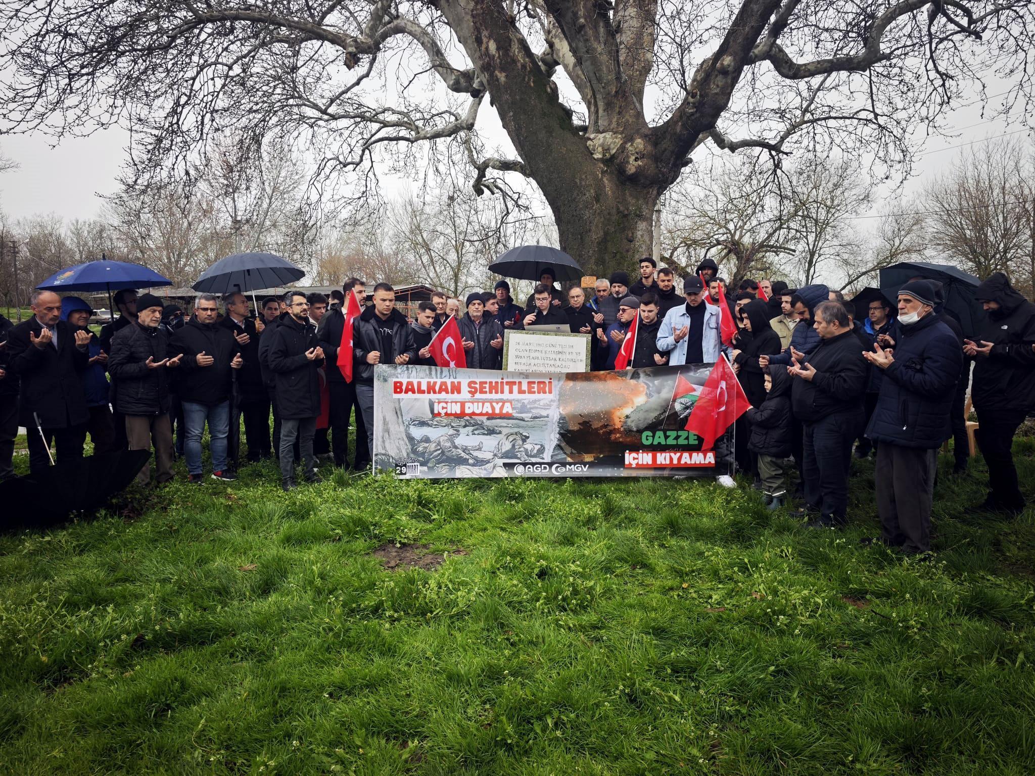 Kentte, ‘26 Mart Balkan Şehitlerini Anma Günü’ kapsamında AGD Edirne şubesi tarafından Sarayiçi'ndeki Balkan Şehitliği'nde 'Balkan şehitleri için duaya, Gazze için kıyama' programı düzenlendi. Balkan Şehitleri ile birlikte Gazze'de hayatını kaybedenler anılıp, duaların edildiği programda AGD Edirne Şube Başkanı Abdülhamit İriş, Balkan şehitlerini anmak ve Sarayiçi mevkisinde esir tutulup, yaşam mücadelesi vermiş binlerce vatan evladını yad etmek için toplandıklarını söyledi.