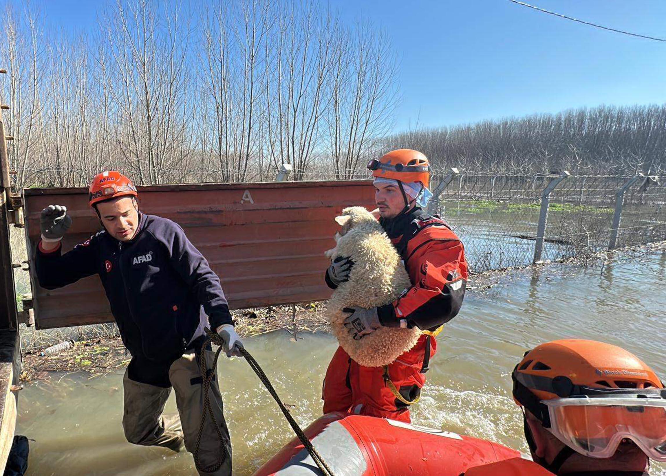 Edirne'de Meriç Nehri'nin bazı bölümlerinin taşması sonucu Bosnaköy ve çevresindeki tarım alanları, su altında kaldı. Bu bölgelerdeki çiftlik ve bağ evlerinde mahsur kalan çiftlik hayvanları ile diğer hayvanların kurtarılması için AFAD ile Edirne Mahalle Afet Gönüllüleri (MAG-EME) ekipleri, çalışma başlattı. Botlarla bölgeye giden ekipler, hayvanları kurtarıp, güvenli bölgelere taşıdı. Bu arada 'kırmızı alarm' uyarısı verilen Meriç Nehri'nin debisinde yükselişi devam ediyor. Bugün saat 10.00'da yapılan ölçümde 1439 olan debi, saat 12.00'de 1450 metreküp/saniyeye yükseldi. Tunca Nehri'nin 175 metreküp/saniye olan debisi ise 171 metreküp/saniyeye geriledi. (DHA)