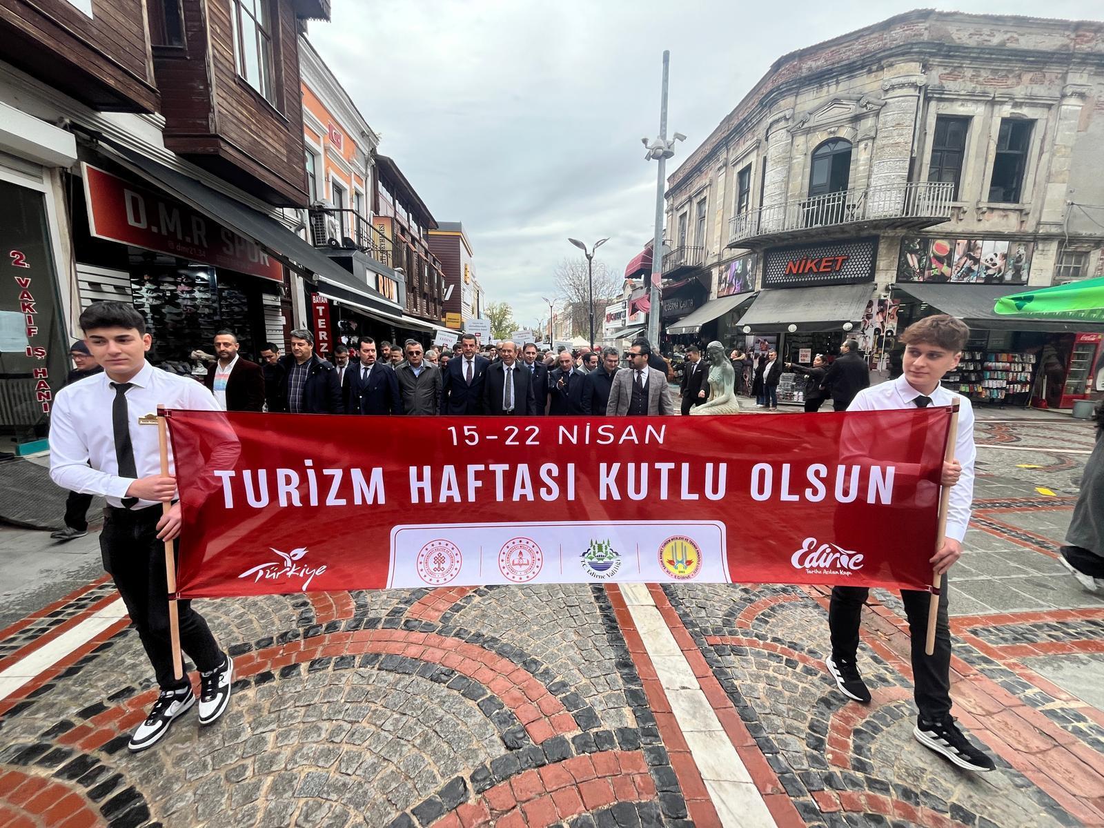 İl Kültür ve Turizm Müdürlüğü tarafından, 49'uncu Turizm Haftası etkinlikleri kapsamında açılış programı gerçekleştirildi. Saraçlar Caddesi'nde buluşan kent protokolü ve öğrencilerden oluşan kortej, Atatürk Anıtı'na yürüyüş gerçekleştirdi. Anıta çelenk sunumuyla başlayan törende, saygı duruşunda bulunulup, istiklal marşı okundu. Törene, Edirne Belediye Başkan Yardımcısı Onur Öktem, Trakya Üniversitesi Rektör Yardımcısı Prof.Dr. Mustafa Tan, kurum ve kuruluş temsilcileri katıldı.