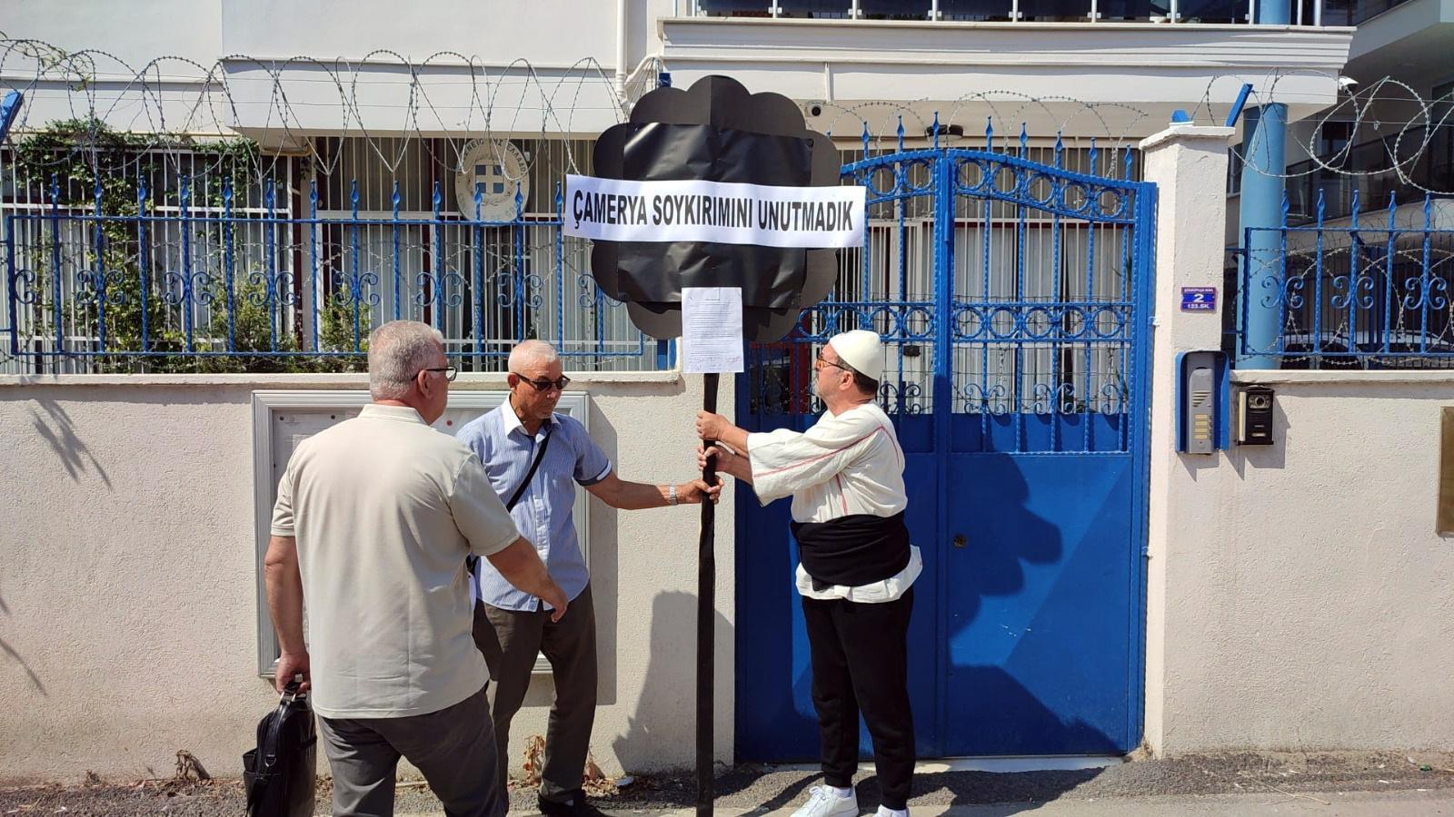 Edirne'de Yunanistan Konsolosluğu önüne 'Çamerya soykırımını unutmadık' yazılı çelenk bıraktılar