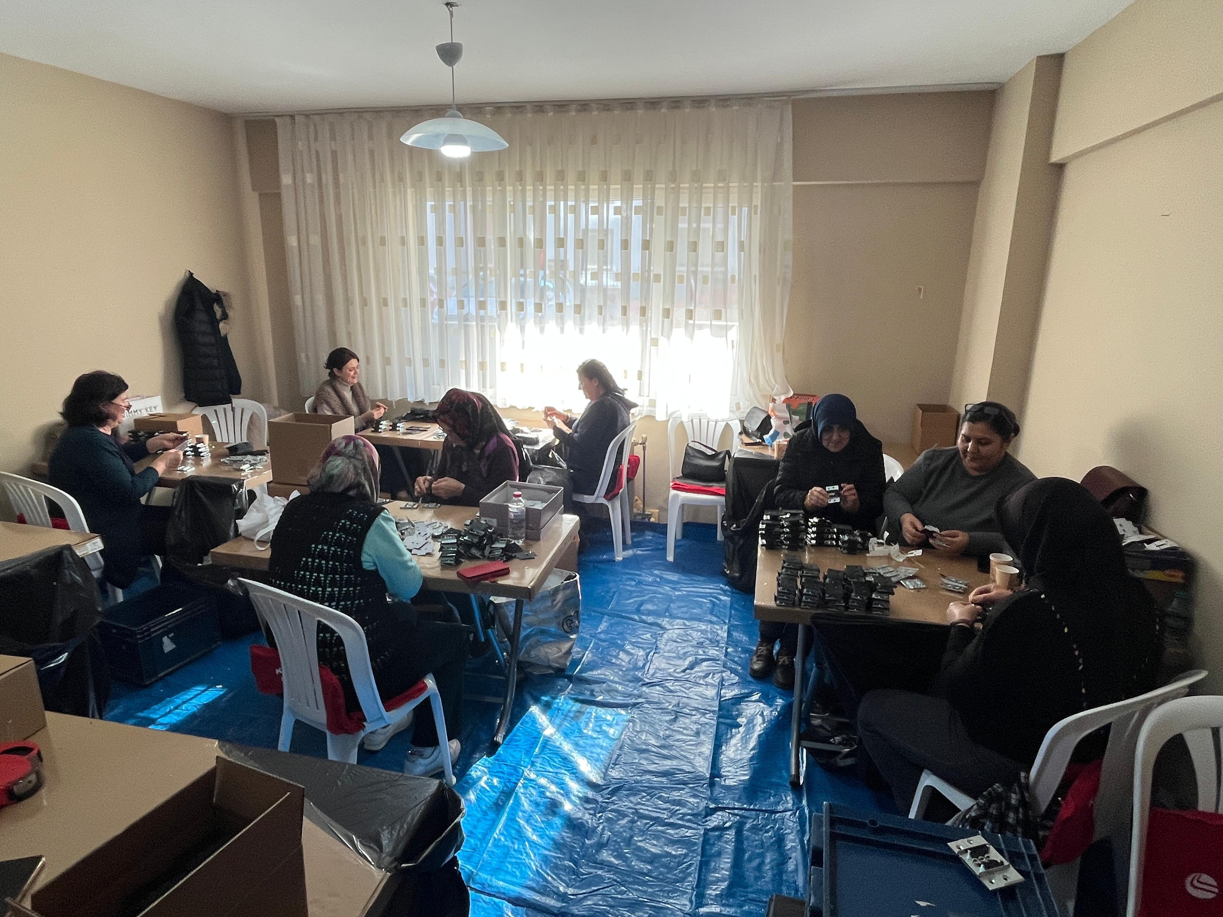 Atölyenin zamanla büyümeye başladığını ve bunun kendisini çok mutlu ettiğini söyleyen muhtar Yılmaz, "Bir OSB firmasının contalarını üretiyorlar. Pimapenlerin içinde görünmez bir aksam var. O contaların üzerine kauçuk yapıştırıyorlar ve bu kauçuklar kolileniyor. Firma tarafından bizden teslim alınıyor ve yurt dışına ihracat yapılıyor. Bu konuda da kadınlarımıza gerçekten çok teşekkür ederim. Atölyemiz gitgide büyümeye başladı. Atölyemizin mevcut sayısı şu an 120 kadınımız var. Ama tabii bunlar çeşitli günlerde değişiklik kaydediyor. Bazı günler işi olmayan kadınımız, komşumuz atölyeye gelemiyor. Mesela o gün bir doktor kontrolü var, hastaneye gidiyor. Ya da çocuğunun okulda veli toplantısı var. Kadınlar için burası çok büyük bir kazanç oldu ve onların burada bu atölyede var olmaları bizlere de mutluluk veriyor" dedi.