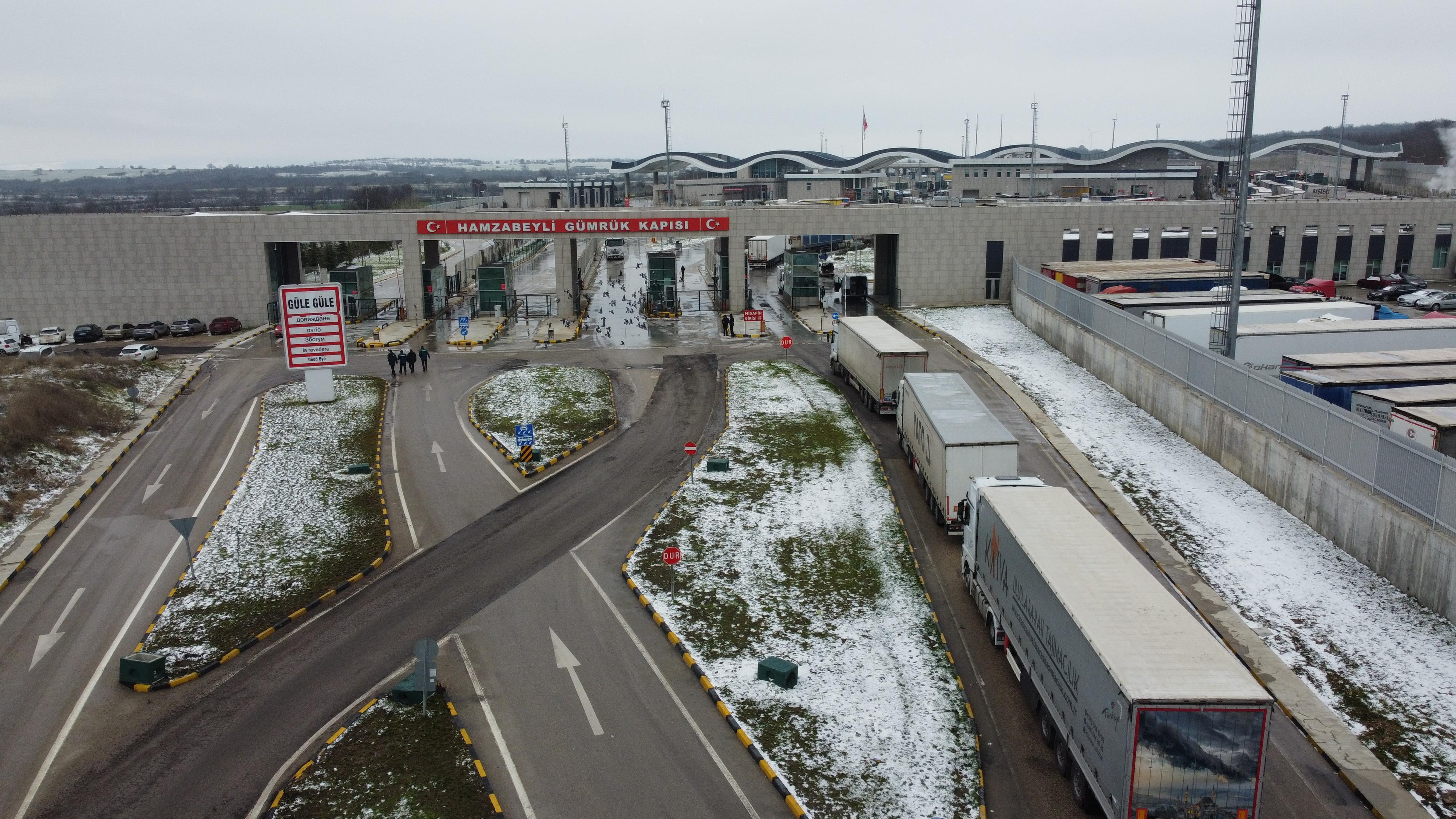 Olgay GÜLER-Umut IŞIK/EDİRNE, (DHA)- EDİRNE’den Bulgaristan’a açılan Hamzabeyli Sınır Kapısı’nda 11 kilometre TIR kuyruğu oluştu. Soğuk havayla mücadele eden şoförlerden Hayrettin Aynacı (43), “Bulgaristan'da kardan dolayı birçok yerde yolların kapandığını gördük. Bu da buradaki çalışmayı da etkilemiş olabilir” dedi.