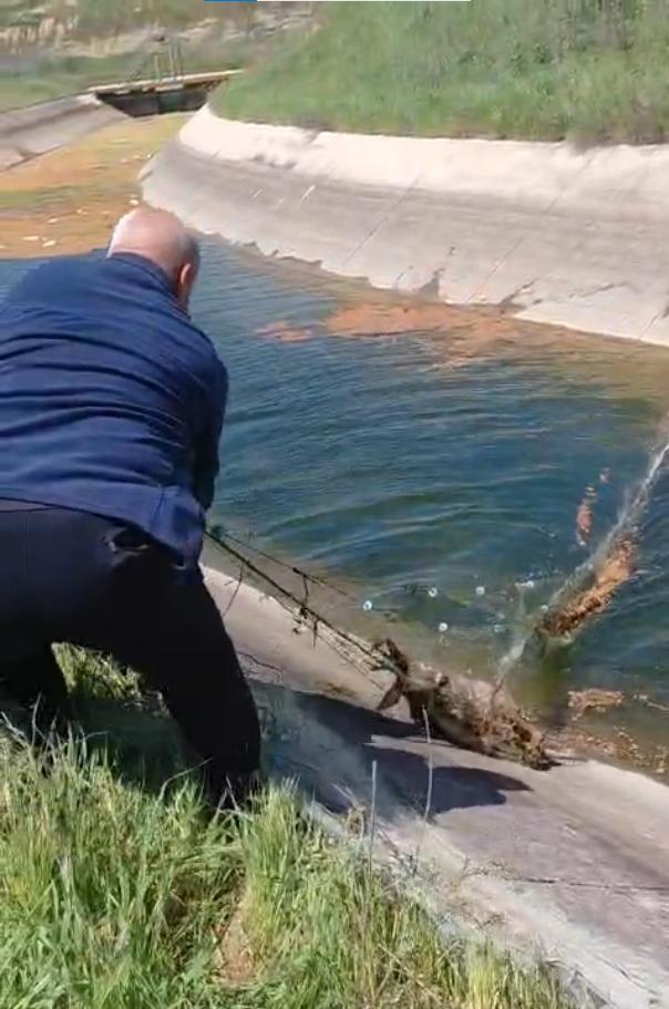 Sulama kanalına düşüp, ağlara dolanan karaca kurtarıldı; o anlar kamerada
