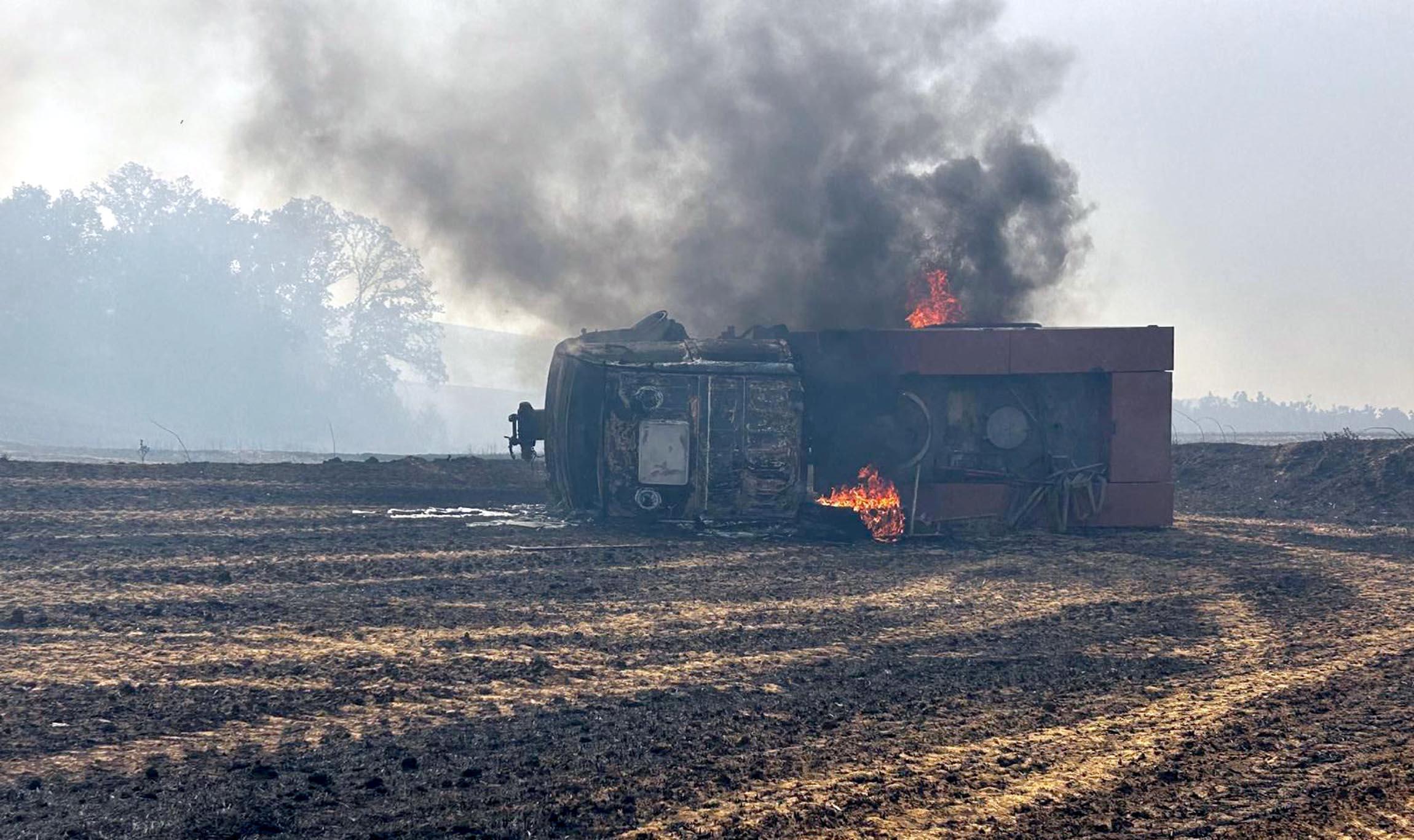 Edirne'nin Keşan ilçesine bağlı Kadıköy'ün Susamdere mevkisinde çıkan yangın kısmen kontrol altına alındı. Yangın söndürme çalışmalarına katılan Keşan İşletme Müdürlüğü'ne ait bir arazöz, arazide toprağa saplanıp devrildi. Araçta bulunan 4 personel hafif şekilde yaralandı. Yaralılar, Keşan Devlet Hastanesi'ne kaldırılarak tedavi altına alındı. Saplandığı yerden çıkarılamayan arazöz alevlerin arasında kalıp yanarak kullanılamaz hale geldi. Ekiplerin yangını tamamen kontrol altına almak için havadan ve karadan çalışmaları sürüyor. (DHA)