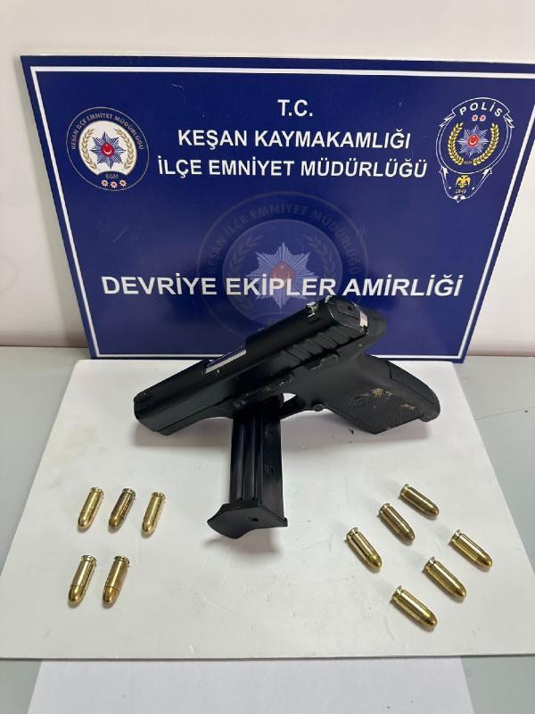 Ünsal YÜCEL/EDİRNE,(DHA)-EDİRNE’nin Keşan ilçesinde kovalamaca sonucu yakalanan U.A.’nın üzerinde 1 ruhsatsız tabanca ve 11 mermi ele geçirildi.