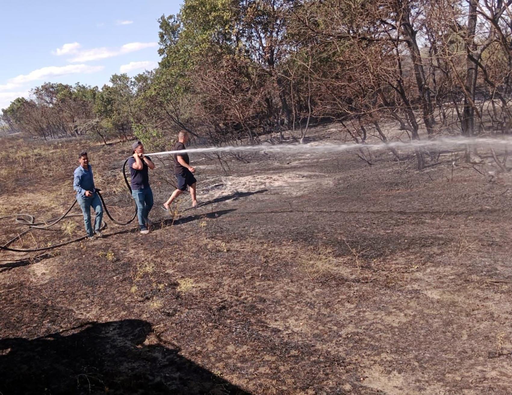 Olgay GÜLER / EDİRNE, (DHA)- EDİRNE’nin Süloğlu ilçesinde ekili buğday tarlasında meydana gelen yangın, yakınındaki yerleşim alanı ve meraya sıçramadan kontrol altına alındı. Yangında, yaklaşık 10 dönüm alandaki buğdaylar zarar gördü.