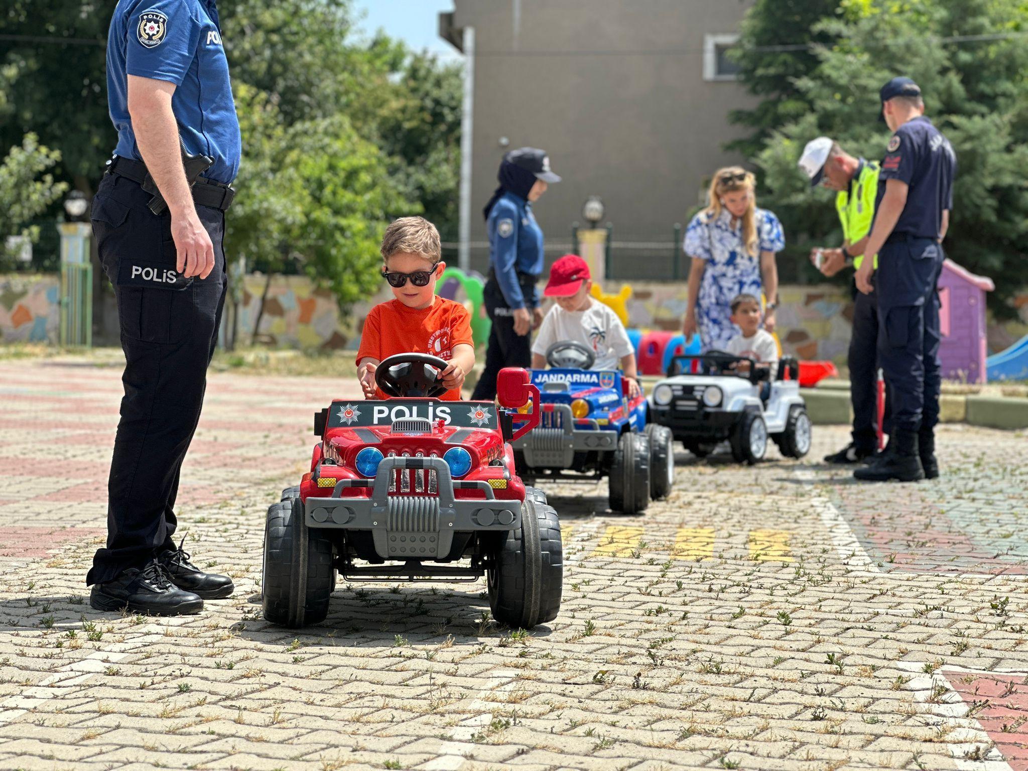 Süloğlu Kaymakamlığı, İlçe Jandarma Komutanlığı ve İlçe Emniyet Müdürlüğü işbirliğiyle, Süloğlu Anaokulu’nun bahçesinde, çocuklarda trafik bilincinin oluşması amacıyla etkinlik düzenlendi. Okulda eğitim gören 4-6 yaş arası öğrencilerin katıldığı etkinlikte, jandarma ve polis ekipleri, çocuklara akülü araçlar eşliğinde trafik kurallarını uygulamalı olarak anlattı. Etkinliğe Süloğlu Kaymakamı Tarık Emre Uşen, İlçe Jandarma Komutanı Üsteğmen Muzaffer Ali Ateş, öğrenciler ve veliler katıldı. Minik öğrenciler, emniyet kemeri takma, trafik ışıklarına uyma, yaya geçidinden geçme gibi temel kuralları parkur üzerinde deneyimleyerek öğrendi.