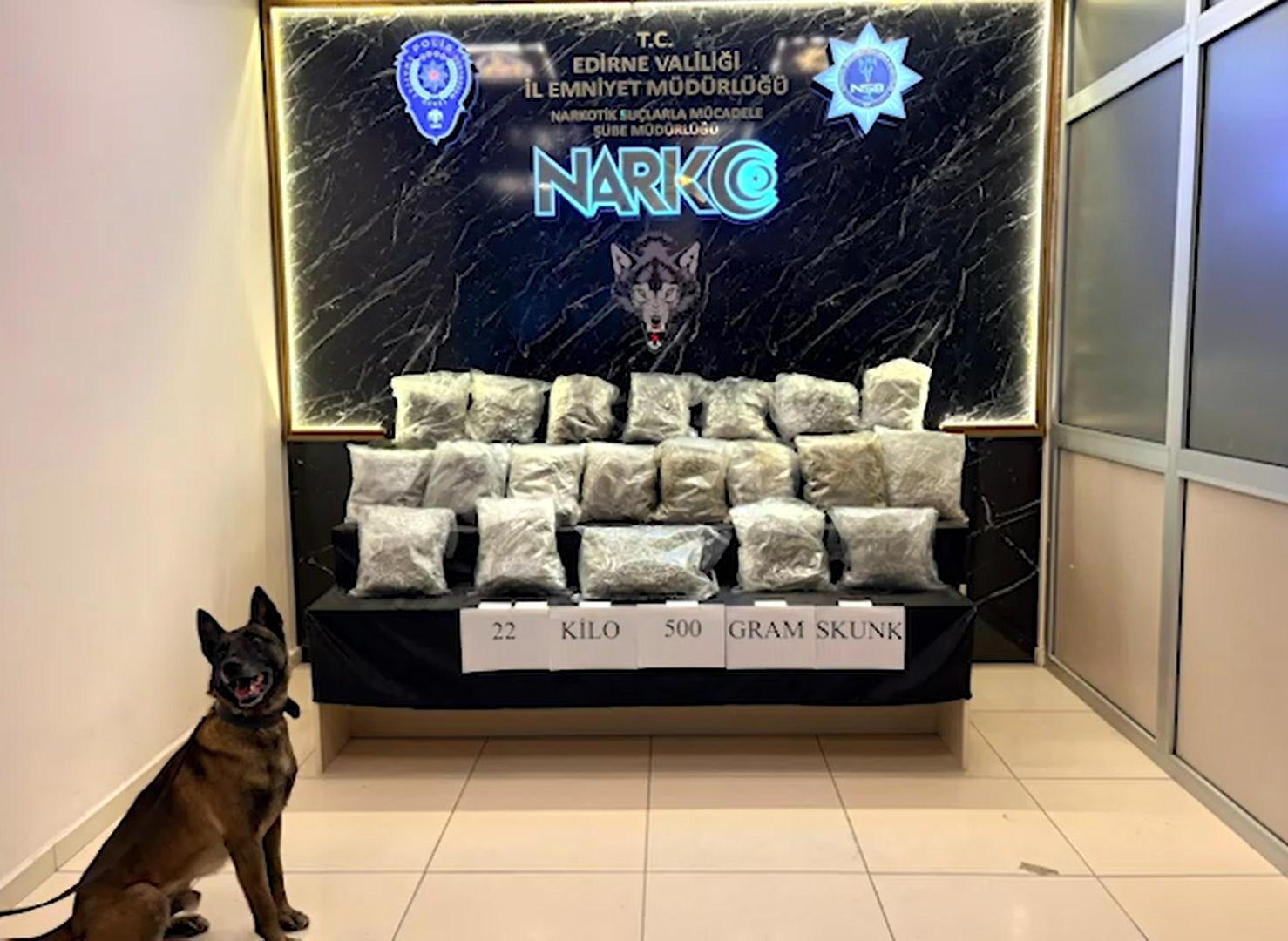 İl Emniyet Müdürlüğü Narkotik Suçlar Mücadele ve İstihbarat Şube Müdürlüğü ekiplerinin uluslararası uyuşturucu ticaretini önlemeye yönelik çalışmasında, yurt dışından gelen 1 TIR'ı takibe alındı. Bulgaristan'a açılan Hamzabeyli Sınır Kapısı'ndan giriş yapan TIR, durdurulup aramaya alındı. TIR'da, narkotik köpeğiyle yapılan aramada stepne içerisinde 22 kilo 500 gram skunk ele geçirildi. TIR'ın şoförü gözaltına alındı. (DHA)